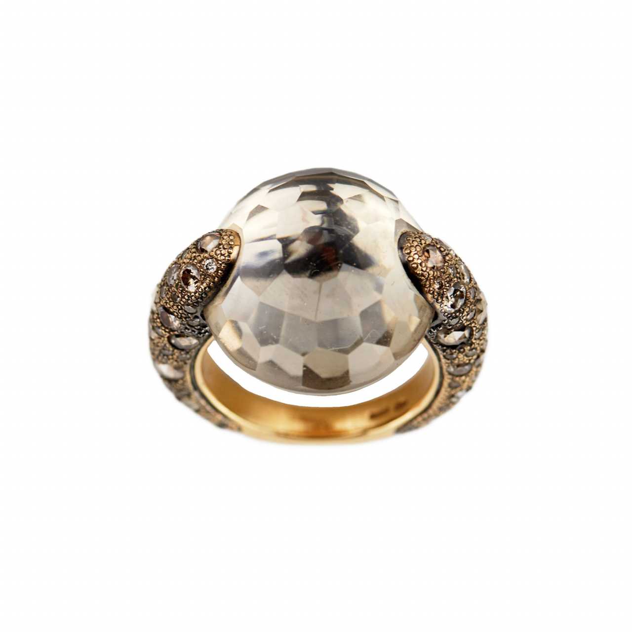 Bague cocktail en or 18K Pomellato Tango Quartz Fume Diamant. Diamants 21th century