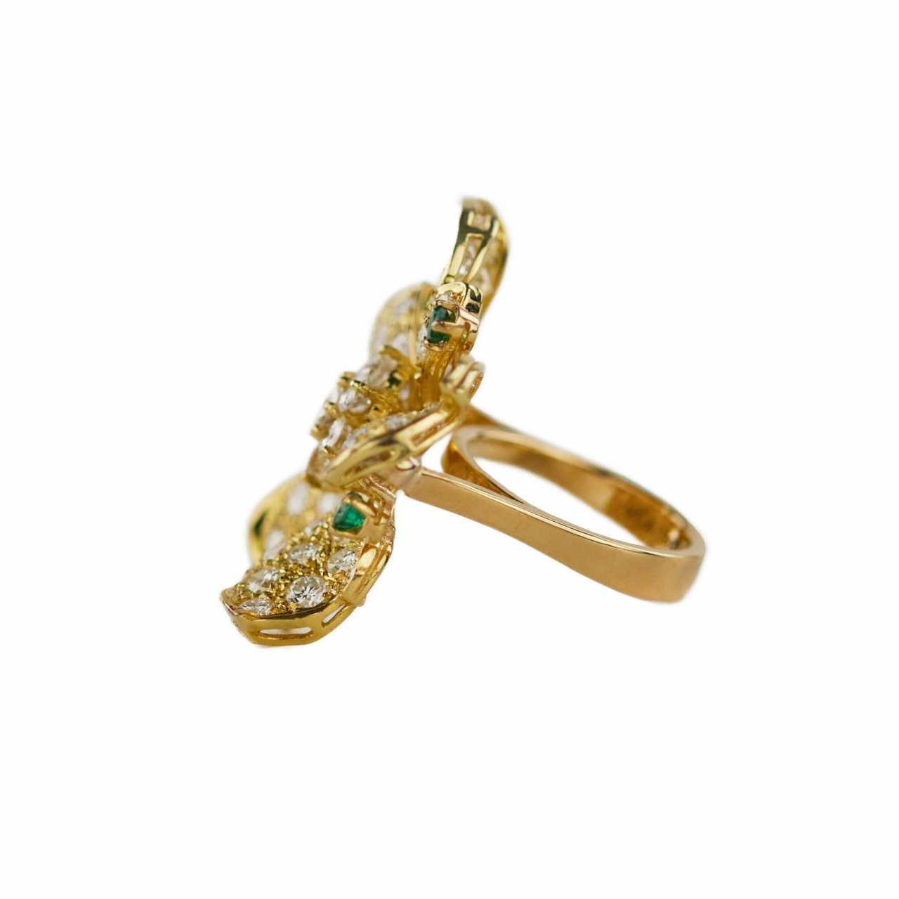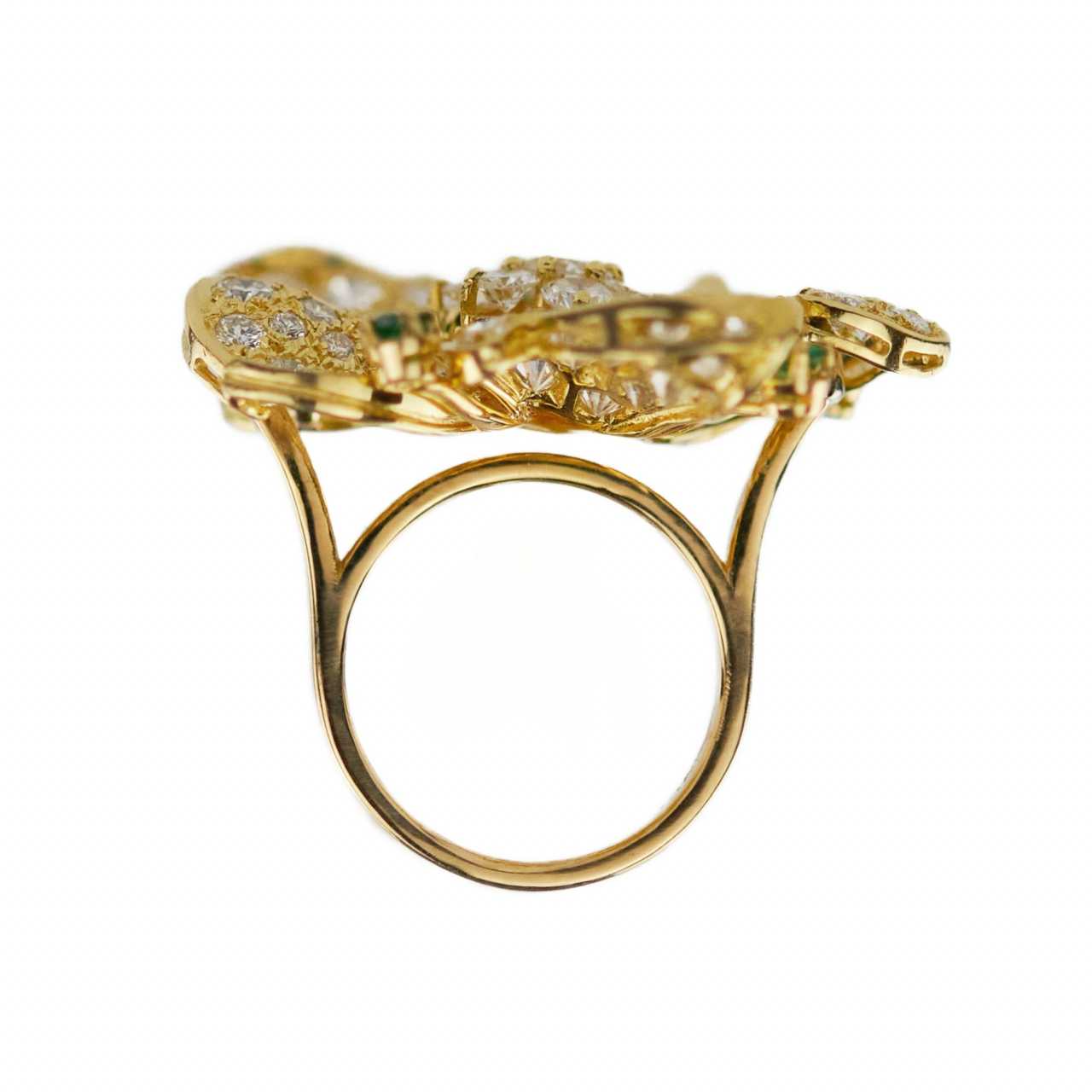 Bague en or 18 carats avec soixante-dix-sept diamants et cinq émeraudes. Emerald 21th century