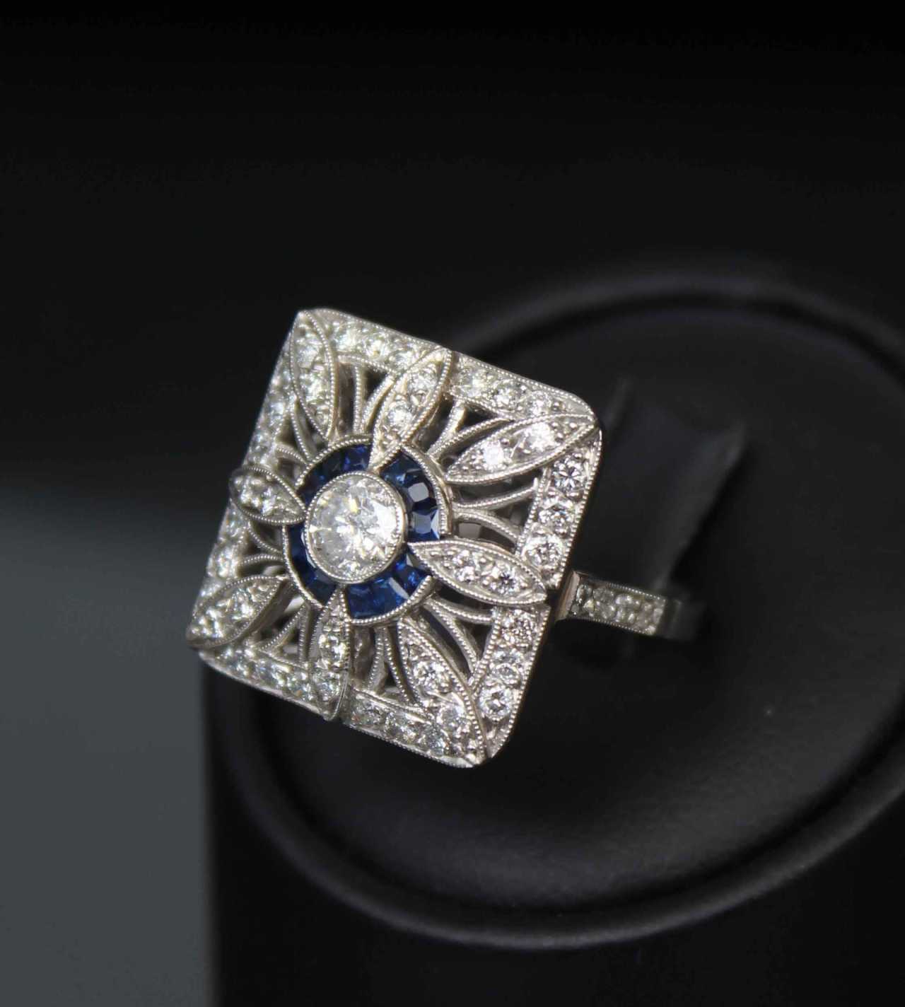 Bague en or avec diamants et saphirs Or Other style 21th century