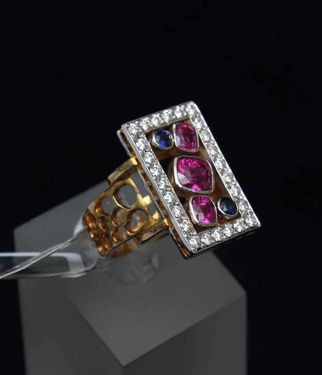 Bague en or avec diamants rubis saphir Or 21th century
