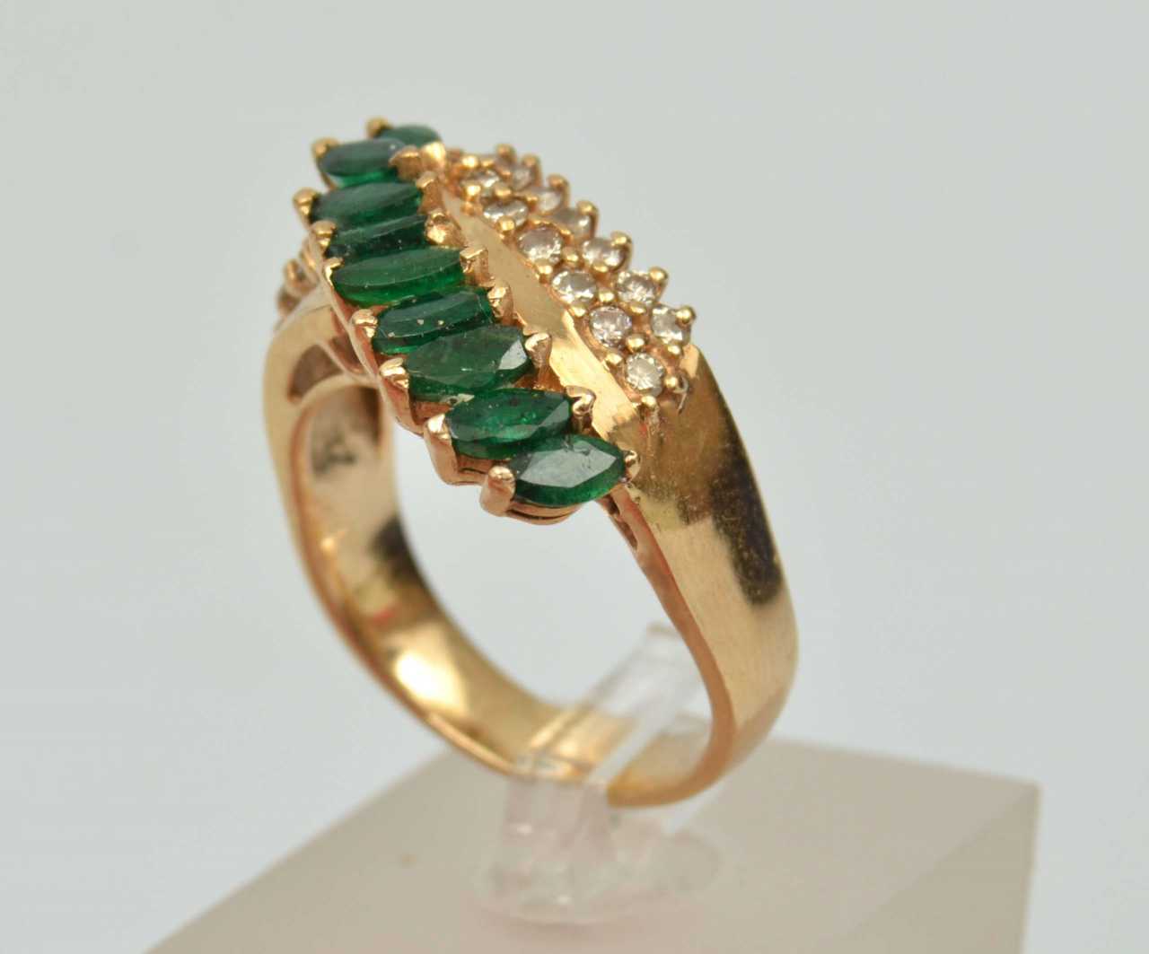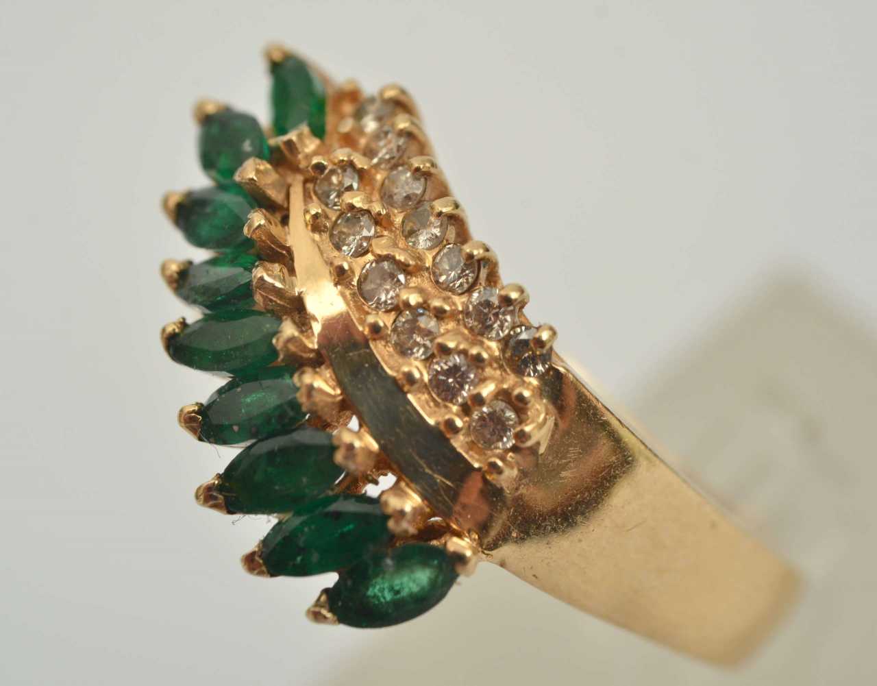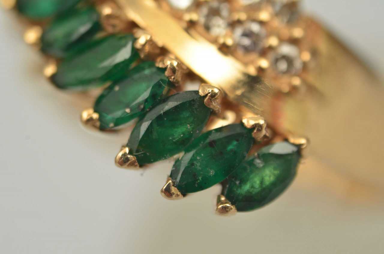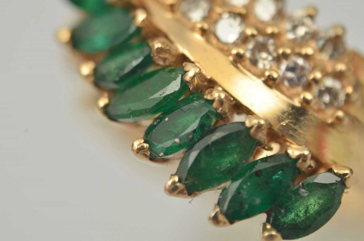 -. Émeraudes, diamants, or 14K, poids 8g. taille 20mm