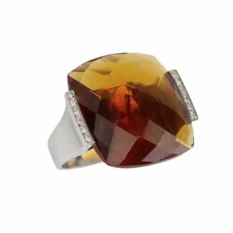 Bague en or blanc 18 carats avec cétrine couleur cognac et diamants. Italie. Deuxième moitié du 20e siècle. Diamants The end of the 20th century