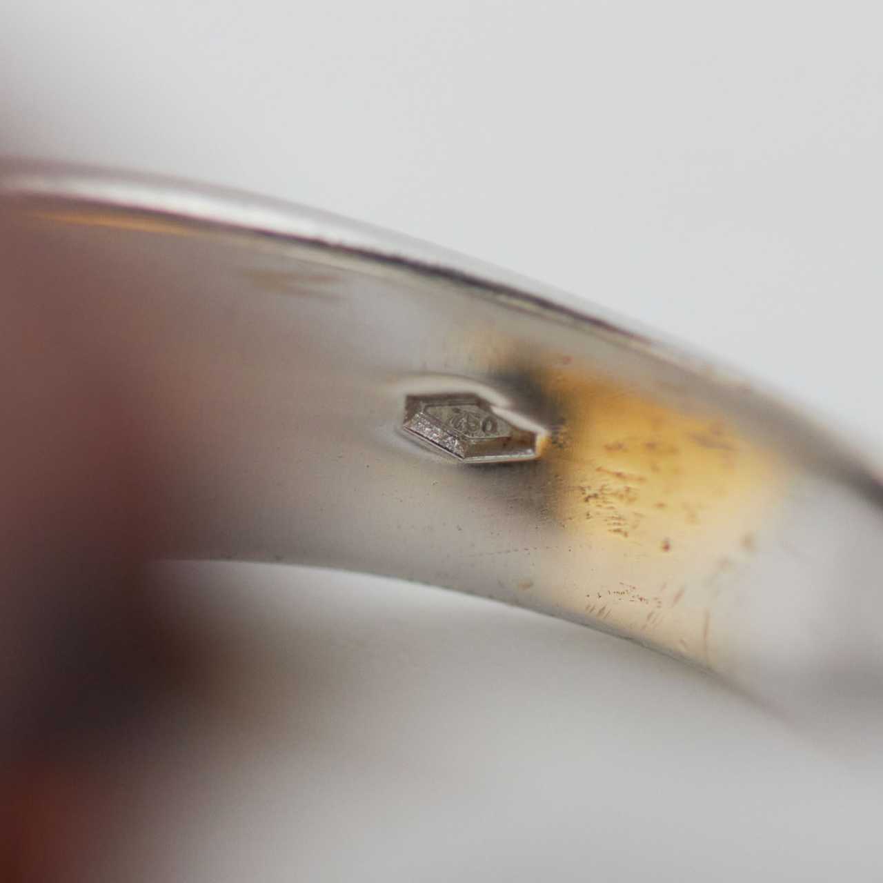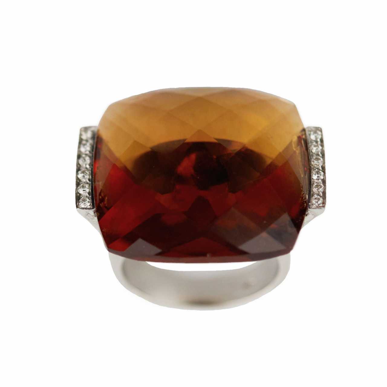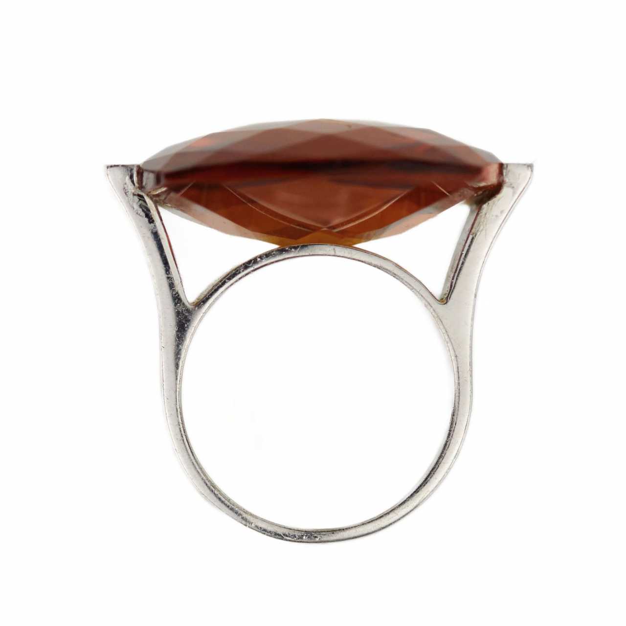 Bague en or blanc 18 carats avec cétrine couleur cognac et diamants. Italie. Deuxième moitié du 20e siècle. Diamants The end of the 20th century