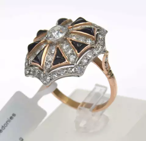 Bague en or et platine avec diamants et calcédoine Or Other style 21th century