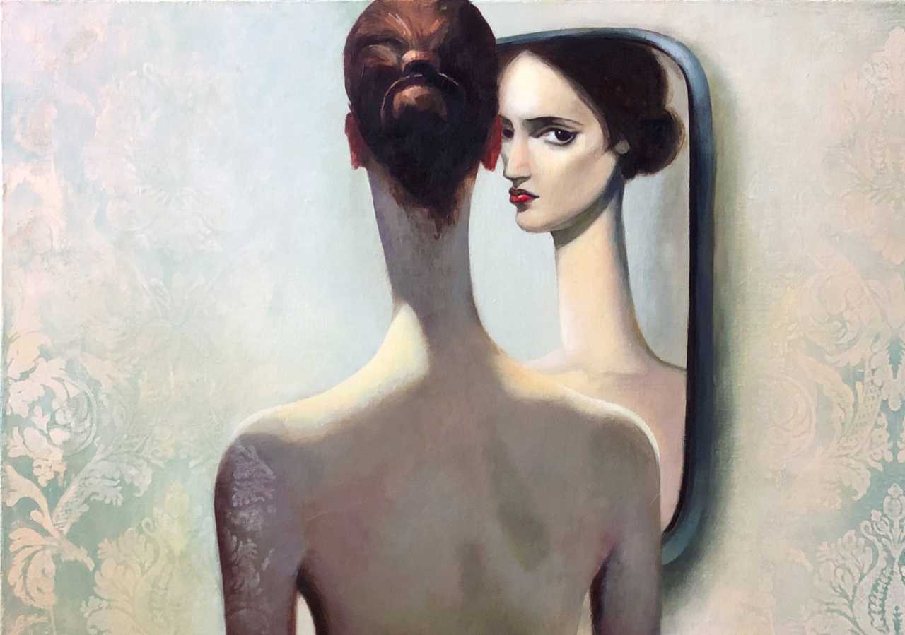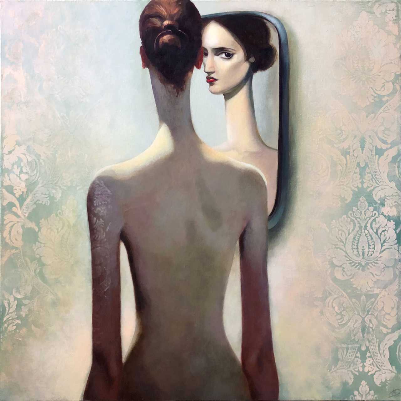 Auteur : Agnese Kurzemniece, Bonjour, acrylique sur toile de lin, dimensions : 80 x 60 cm, année 2023