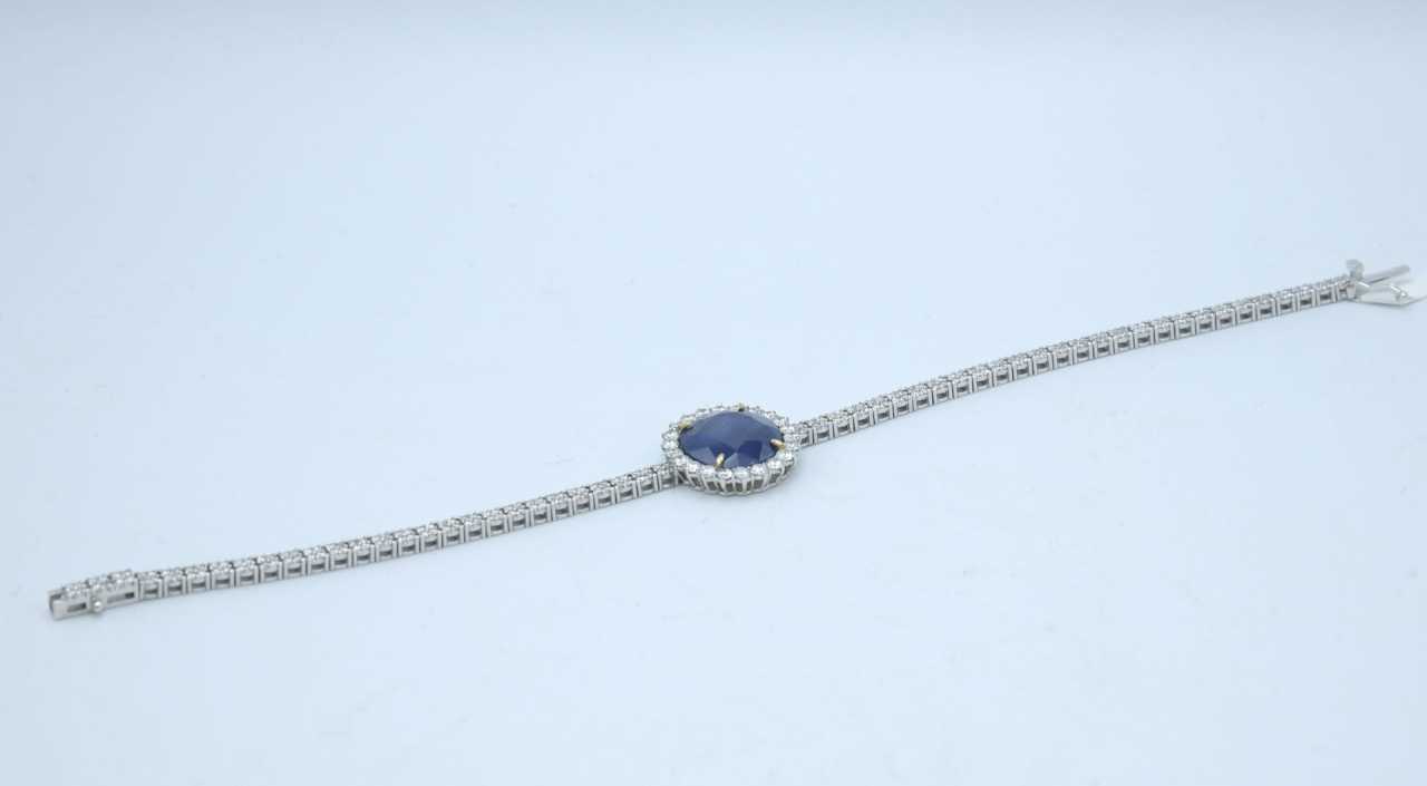 Bracelet en or blanc avec diamants et saphir Or 21th century