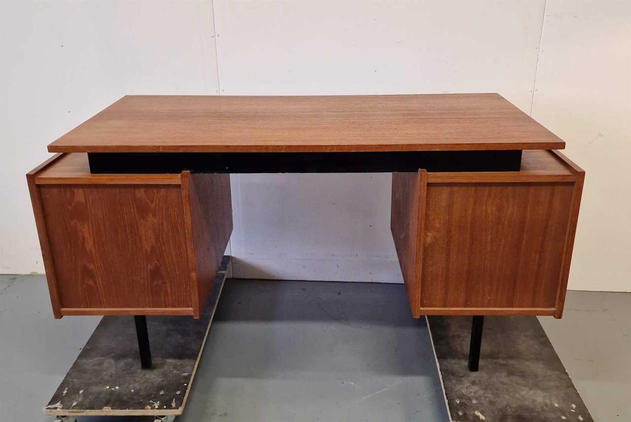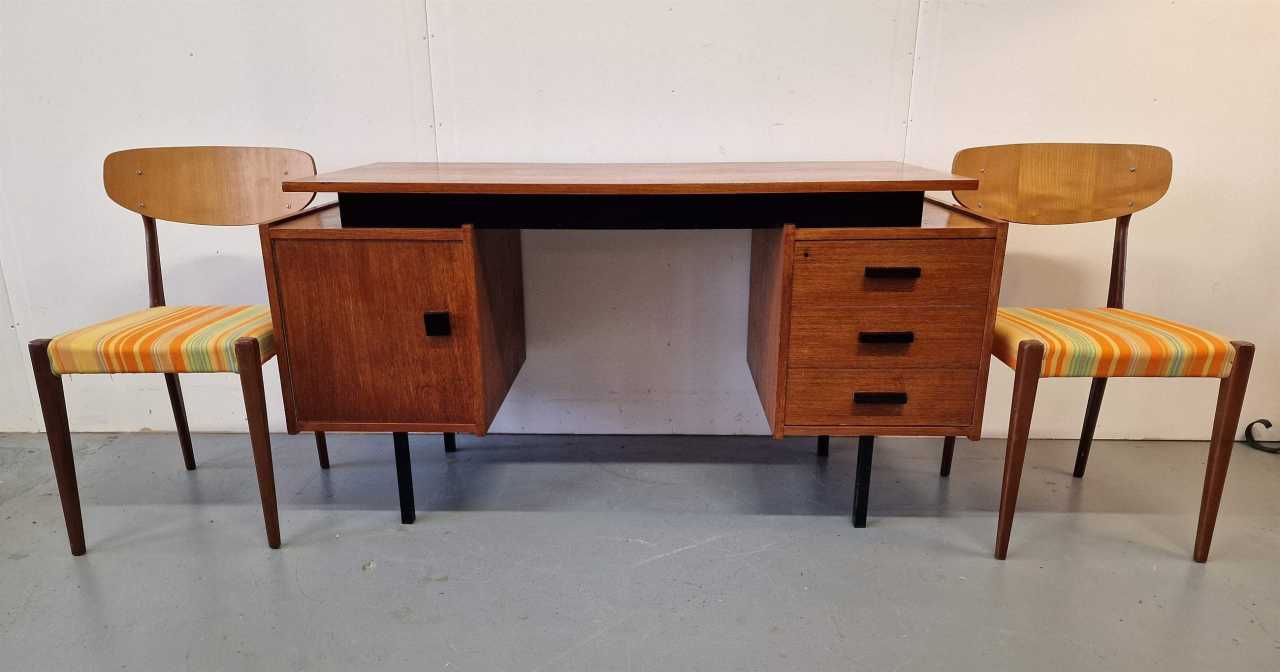 Danish design vintage desk.Comes with two chairs.Mahogany veneer.1960s.Desk dimensions: Height 76cm; length 142cm; width 61cm