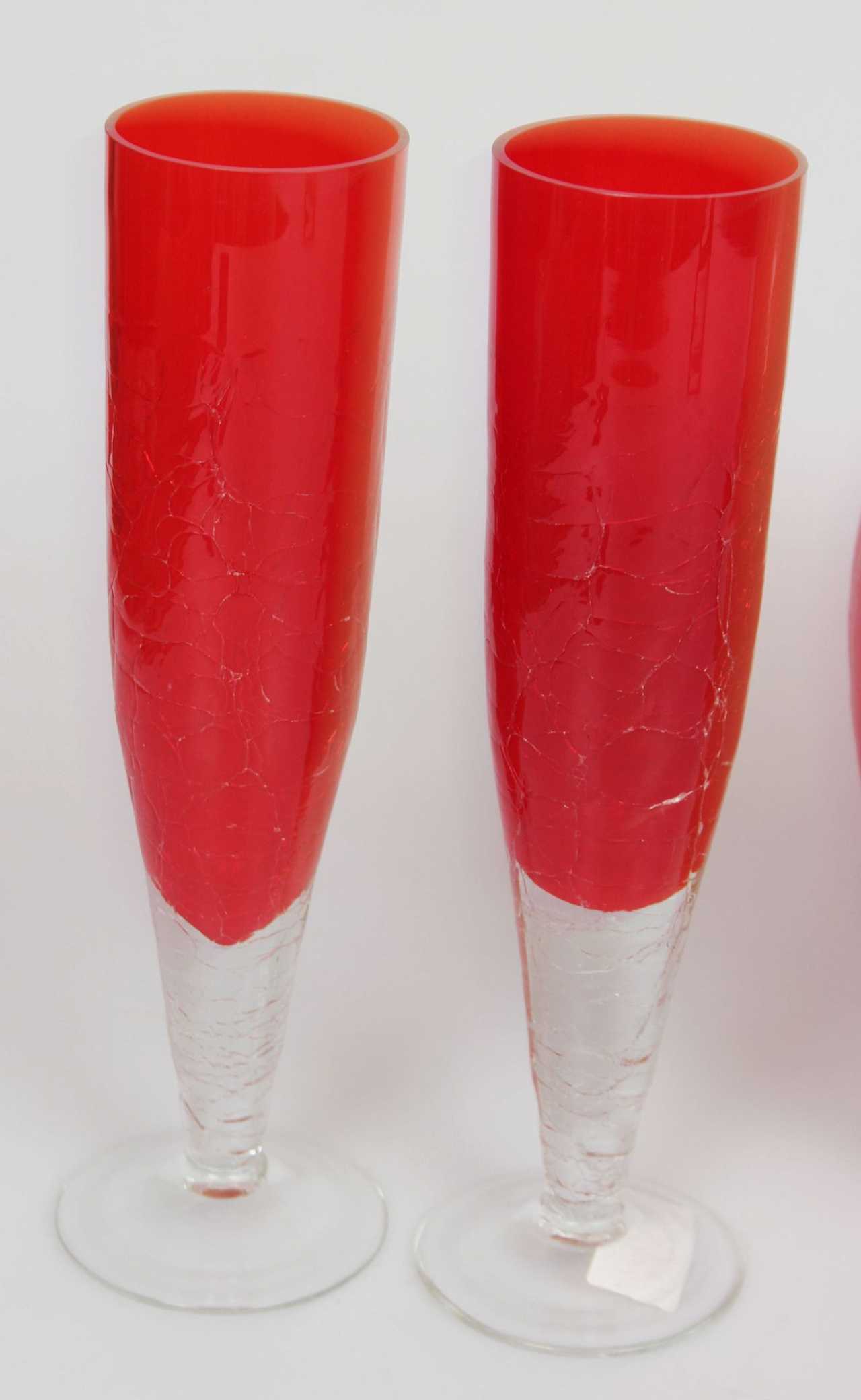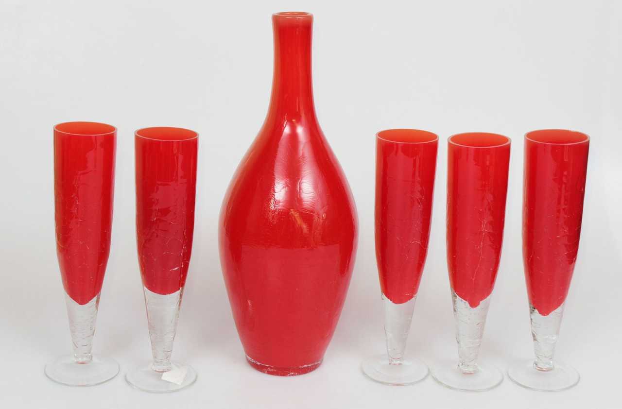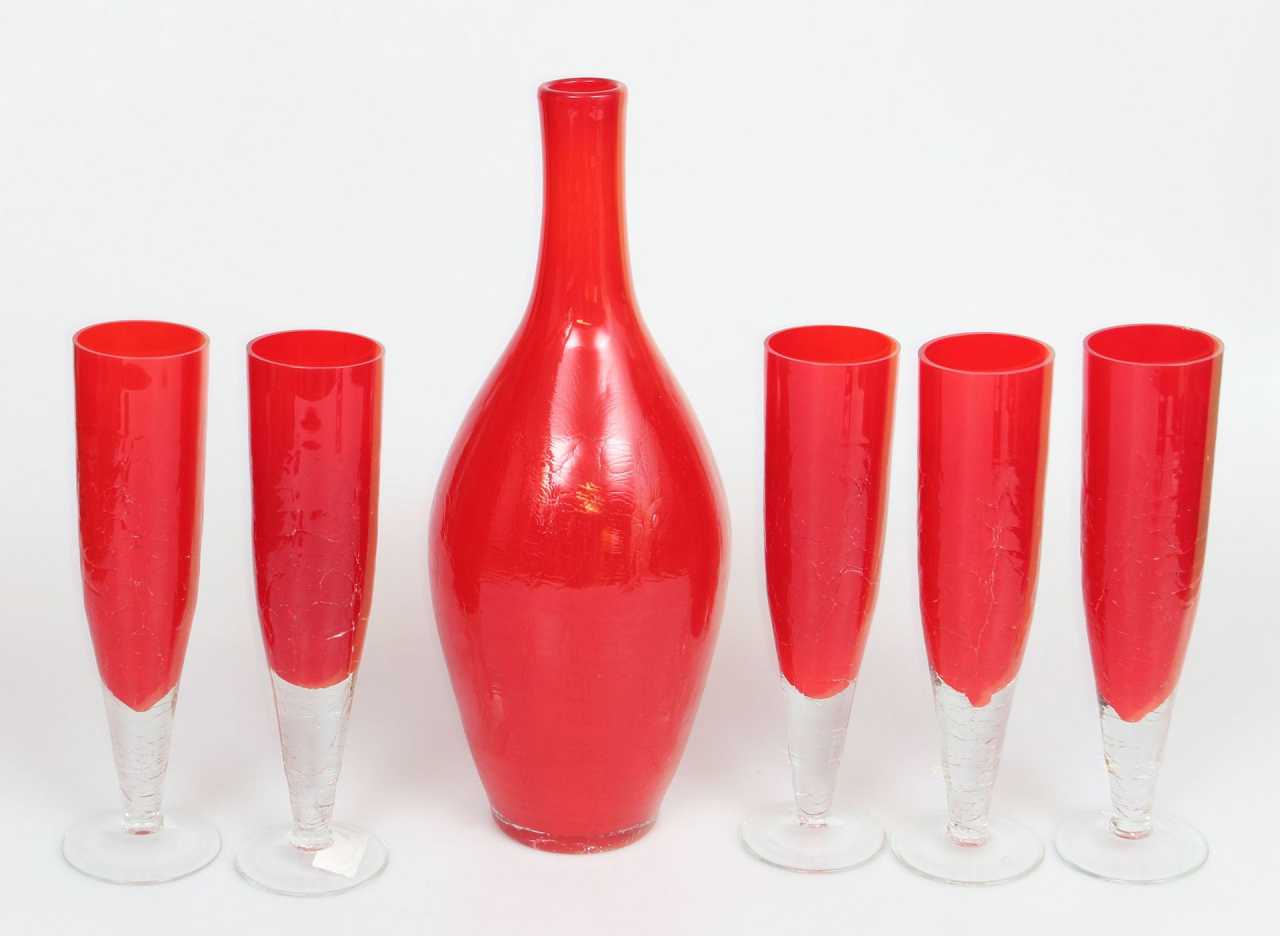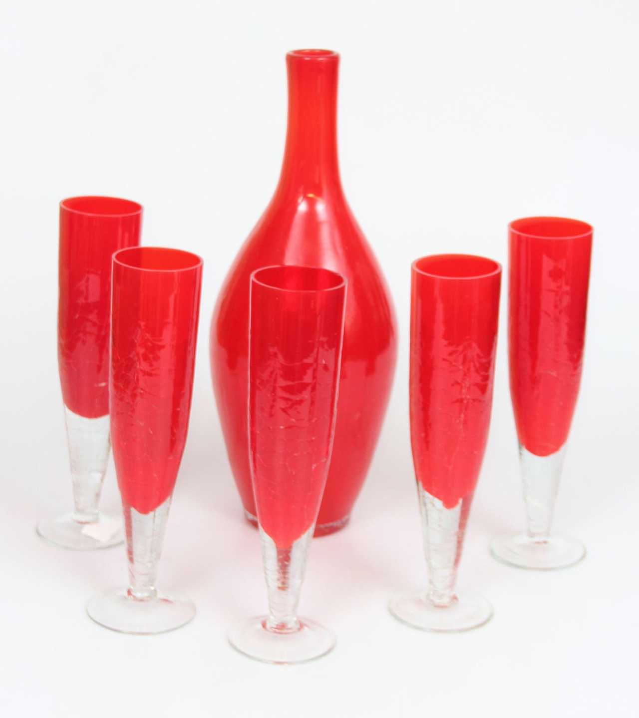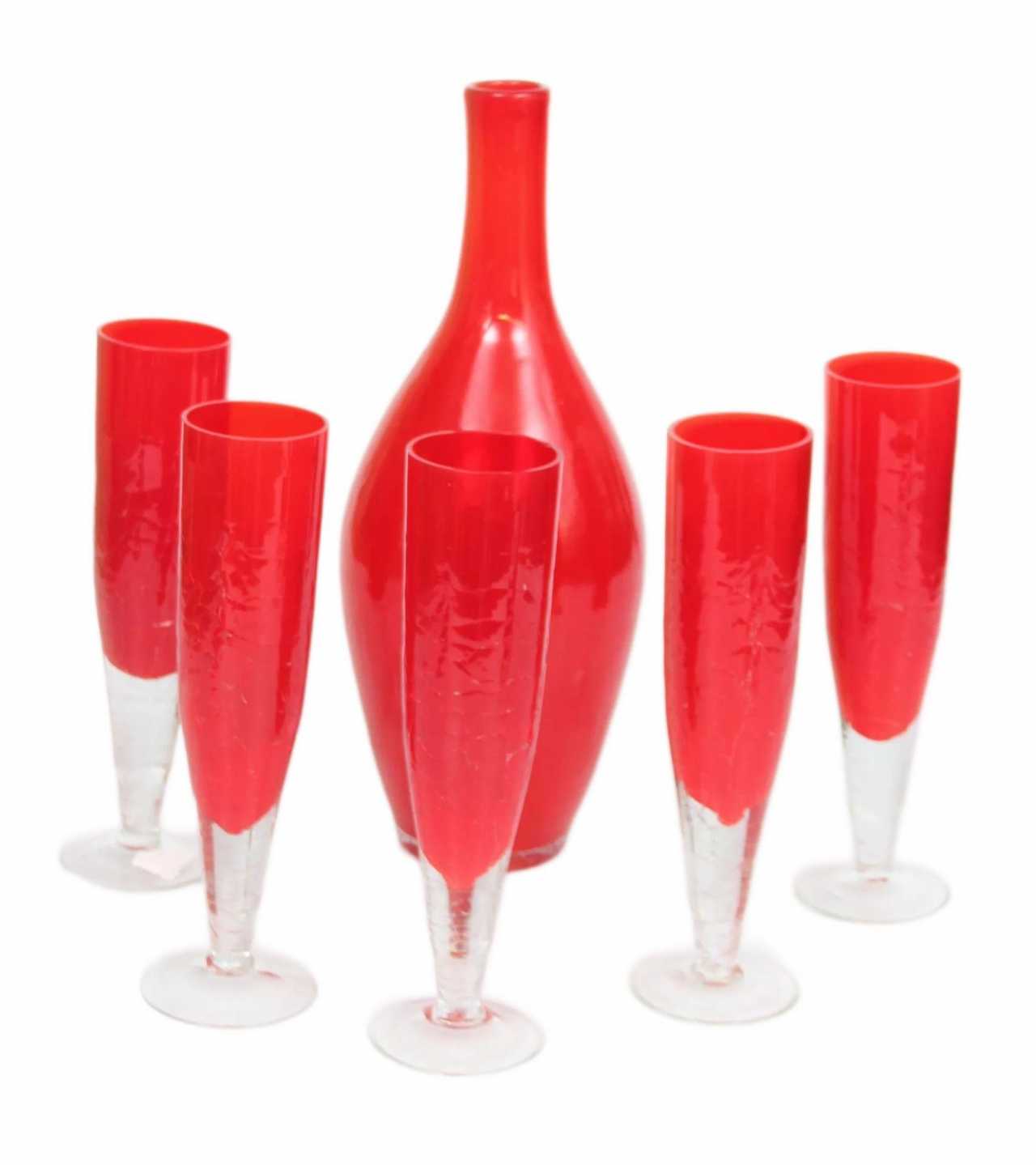 Carafe en verre rouge avec cinq verres Verre Mid-20th century