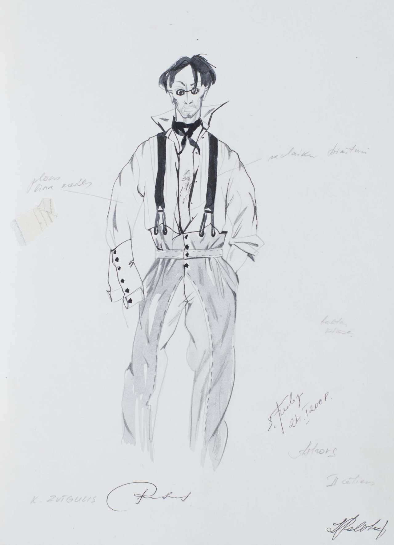 21ème siècle. Esquisses de théâtre d&39;artistes contemporains - Kristīne Abika, Izolde Cēsniece-Suipe, Inara Gauja, Anna Heinrihsone, Ieva Jurjāne, Kristīne Jurjāne, Ieva Kaulina, Ieva Kundziņa, Elita Patmalniece, Liene Rolšteina, Jurate Silakaktina, Ilze Vītoliņa.50x35 cm ; 49,5x34,5 cm; 42x29,5cm; 41x31cm; 38x32cm; 30x21 cm