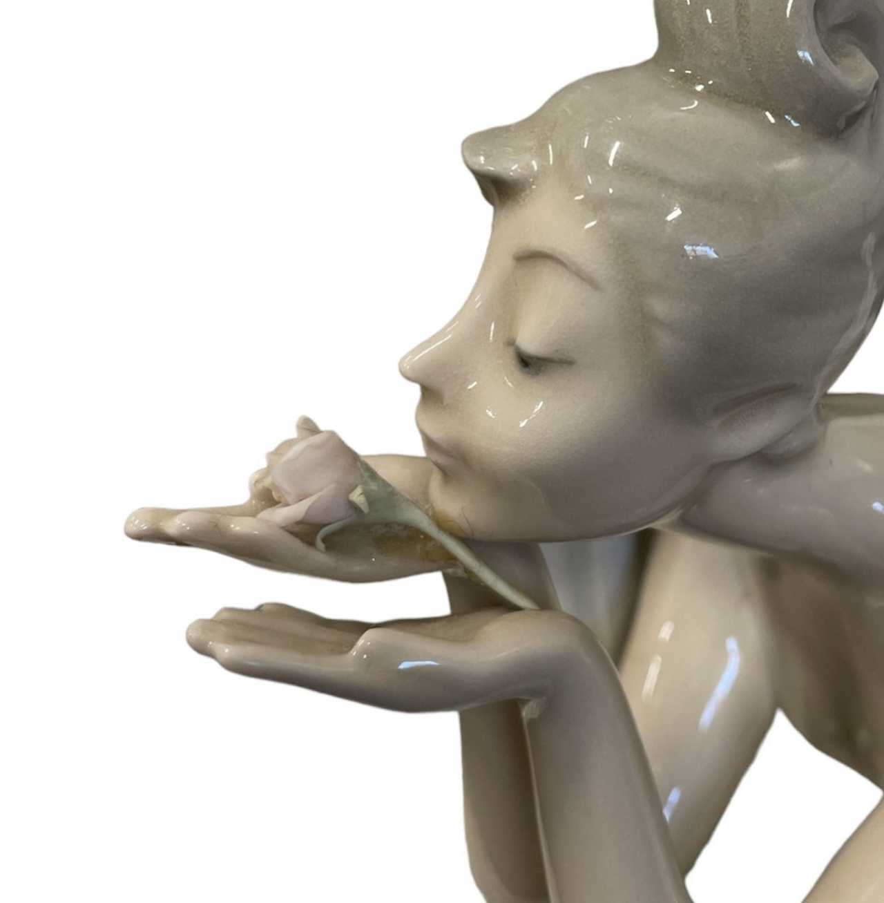 Contemplation LLADRÓ, également connue sous le nom de Lady Ballet. Sculpteur : Fulgencio Garcia. Très rare et non catalogué. Pas de tampon, il y a un petit éclat sur le chausson de danse. Généralement en bon état. Il semble que la rose dans les mains ait été ajoutée plus tard et quil ne sagisse pas dune sculpture originale. Veuillez vous référer à la photo ci-jointe pour une explication.
