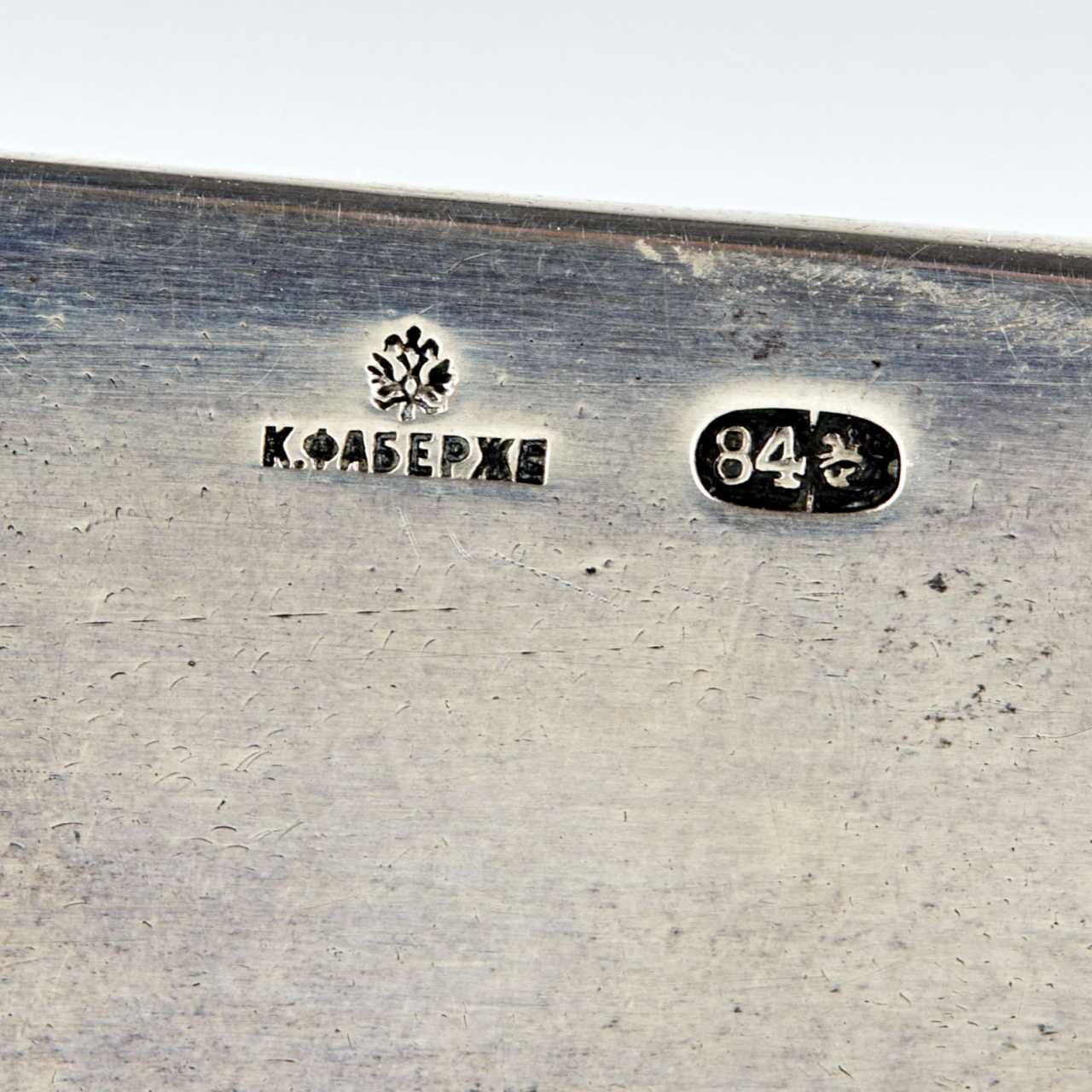 Original dans l`intrigue et la presentation, coupe-papier Faberge en argent, dernier quart du XIXe siècle. Dont le manche est une figure de paysan coupant une bûche, et la lame est un arbre aminci sous son travail. La base plate des racines fonctionne simultanement comme un piedestal, permettant au couteau d`être affiche verticalement et considere comme un objet artistique et un element de bureau attrayant. Poinçon Faberge complet sur la lame du couteau. Moscou 84 echantillons d`argent du dernier quart du 19ème siècle. Longueur du couteau : 21,5 cm Poids : 228 gr.