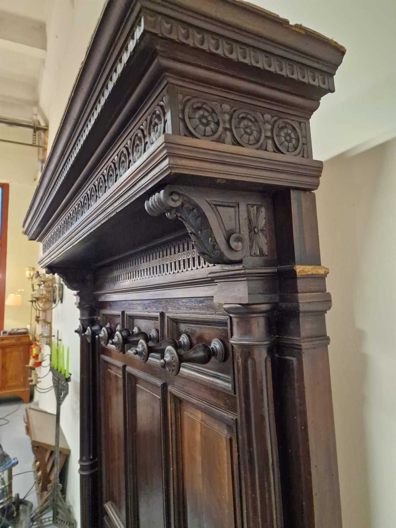 Élégant porte-manteau d& 39;entrée. Noyer. Italie. Seconde moitié du XIXe siècle. Dimensions : hauteur 209 cm ; largeur 143 cm ; profondeur 33 cm