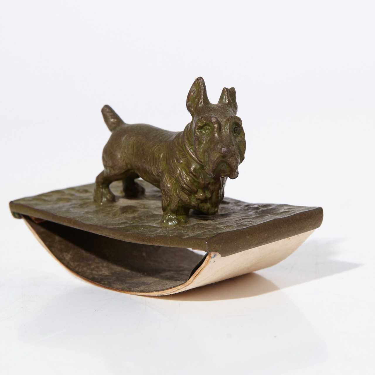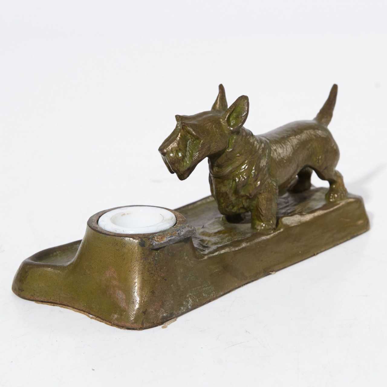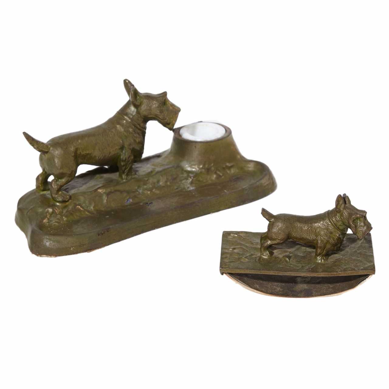 Ensemble decriture, compose dun encrier et dun presse-papier, avec des figures de Scotch Terriers en competition pour lencrier. Provenance: de la collection Russell Bodes