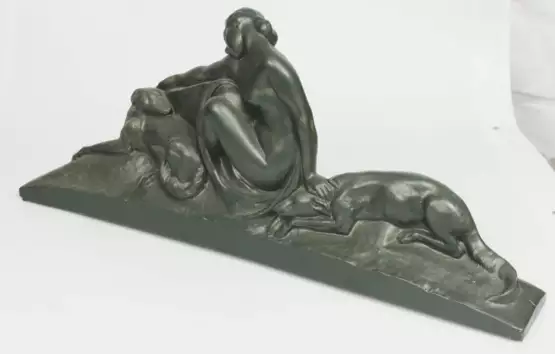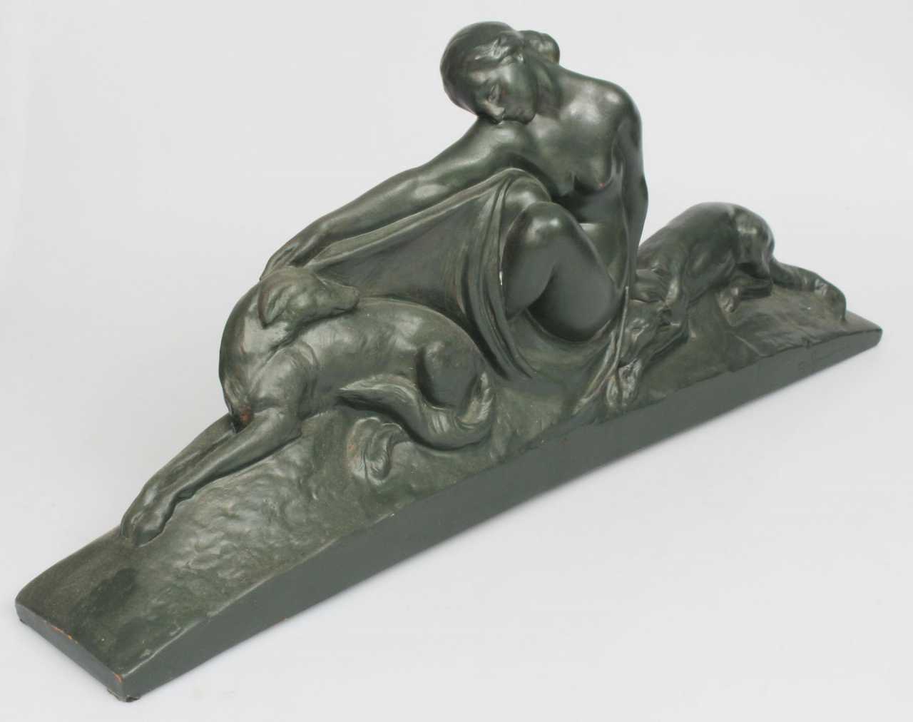Figure en céramique Art Déco Femme avec un chien Céramique Early 20th century
