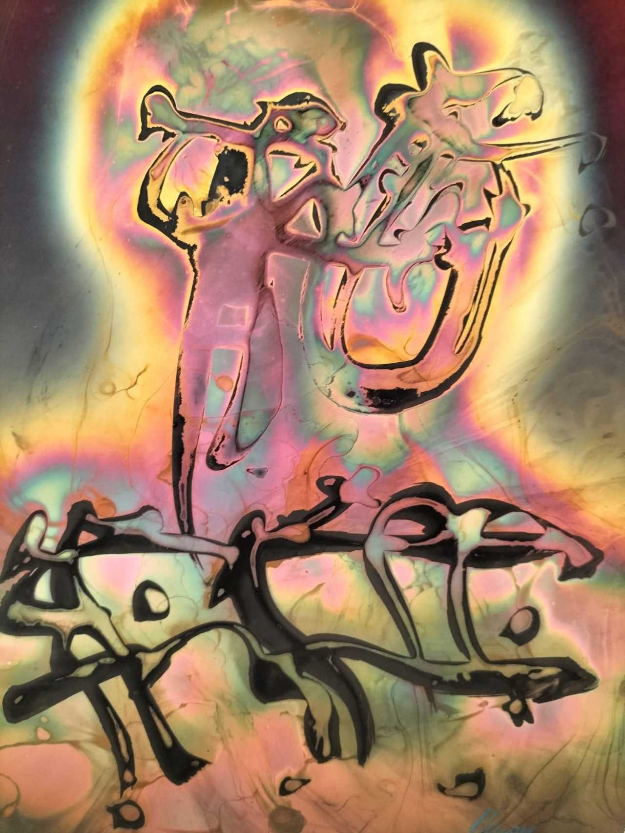 Artist : Arthur UNGER (1932- )Crafted through the intricate process of flame-painting on copper, this piece showcases an explosion of vibrant colors, from rich copper tones to iridescent pinks and greens. The unique patterns and textures are the result of intense heat transforming the metal, creating a one-of-a-kind work of art that cannot be replicated.This piece is sold without a frame.About the Artist:BiographyArthur Unger was born in 1932 in the city of Hespérange, Luxembourg.After graduting, he follows administration and management courses in Bruxelles, and then settle in Belgian Congo, where he had lived for 5 years, and specially with the tribes Lunda and Baluba. This long African journey is very important for the development of Arthur’s art.In 1963, back to Europe, he settles in Paris. There, he discovers the artistic life of the French Capital and makes his first drawings and gouaches.In 1968, he came back to Luxembourg, and invents a technique of drawing with Inidian Ink, and a painting technique uppon brass, using electrolytic cupper which became his favourite medium (he calls his new technique « pyrochemograms uppon cupper »).In 1970, he meets Michel Tapié ; it is a major event in the artistic life of Arthur. Tapié is very interested in Arthur’s work and writes the forewords of all the exhibitions by Arthur Unger in France and in the world. In 1980, Michel Tapié dedicated a monograph to Arthur Unger at the Galerie Sources in Paris.The personal exhibitions of the works of Arthur Unger mainly take place in France, in Luxembourg, in Germany and in Switzerland (three times at the Basel Art Fair).