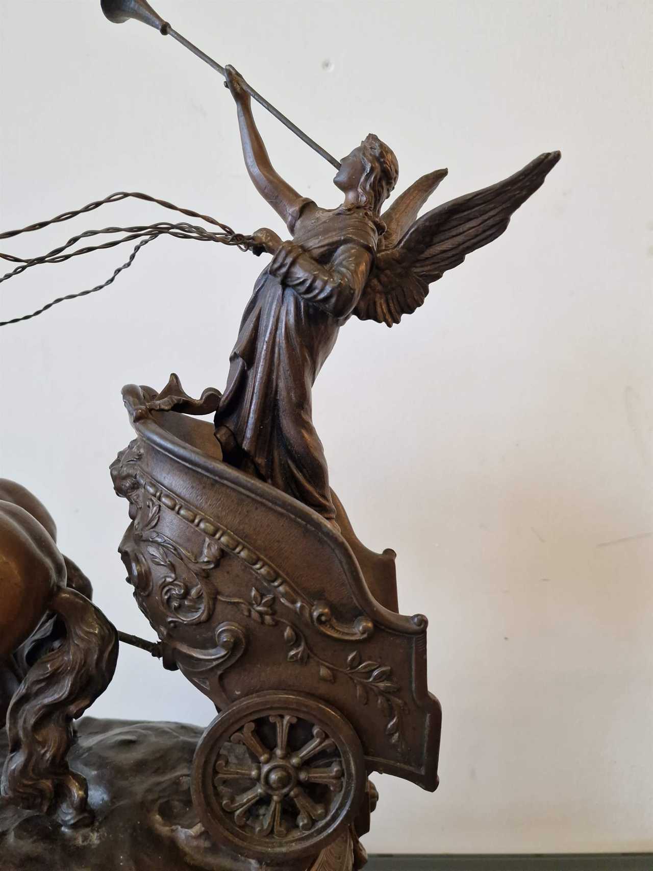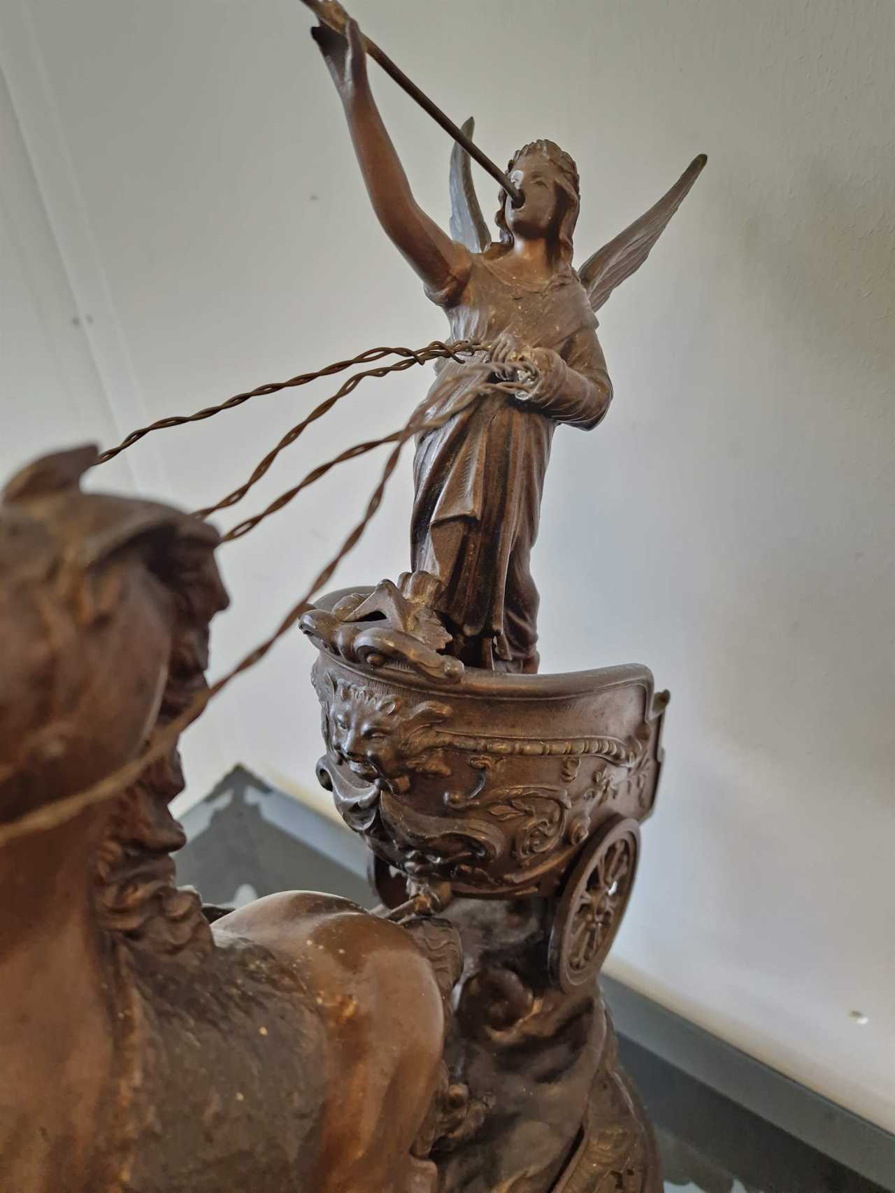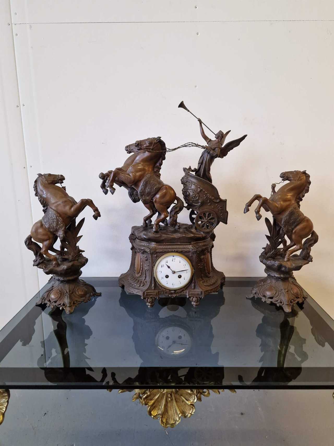 Horloge avec figures de chevaux.Métal.France.Années 1920.Dimensions du cadran : hauteur 60 cm ; longueur 37 cm ; largeur 18 cm.