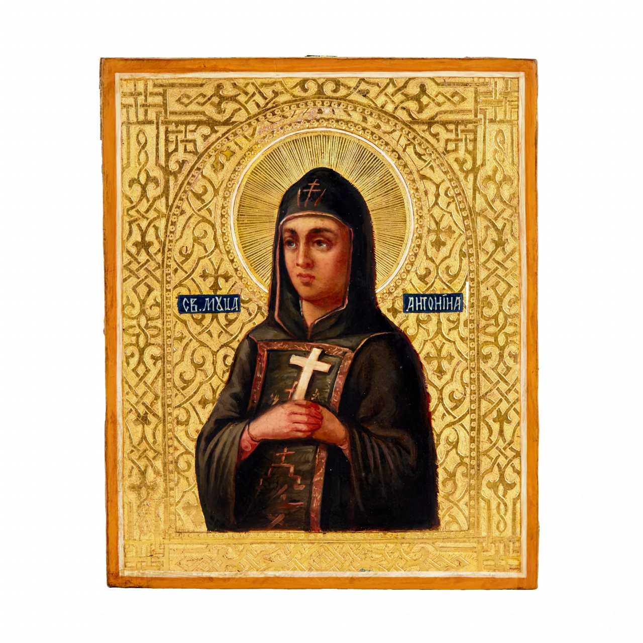 Icône russe de la sainte martyre Antonina tournant des XIXe et XXe siècles. Wood gesso gilding tempera At the turn of 19th -20th century