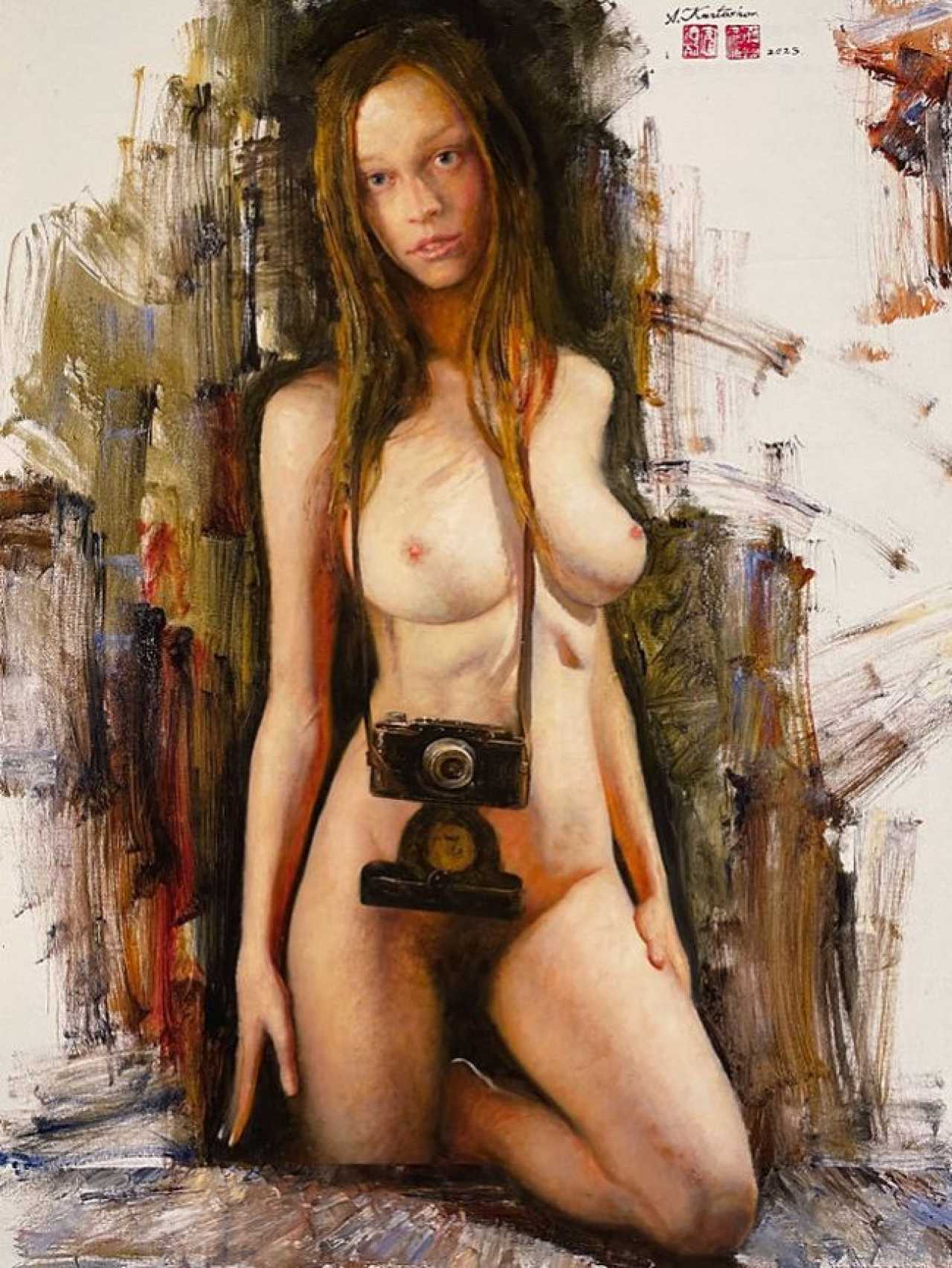 Impression giclée sur toile Nu avec un appareil photo 2023 par Kartashov Andrey Russie 21e siècle. 1 des 50 tirages limités. Toile 21th century