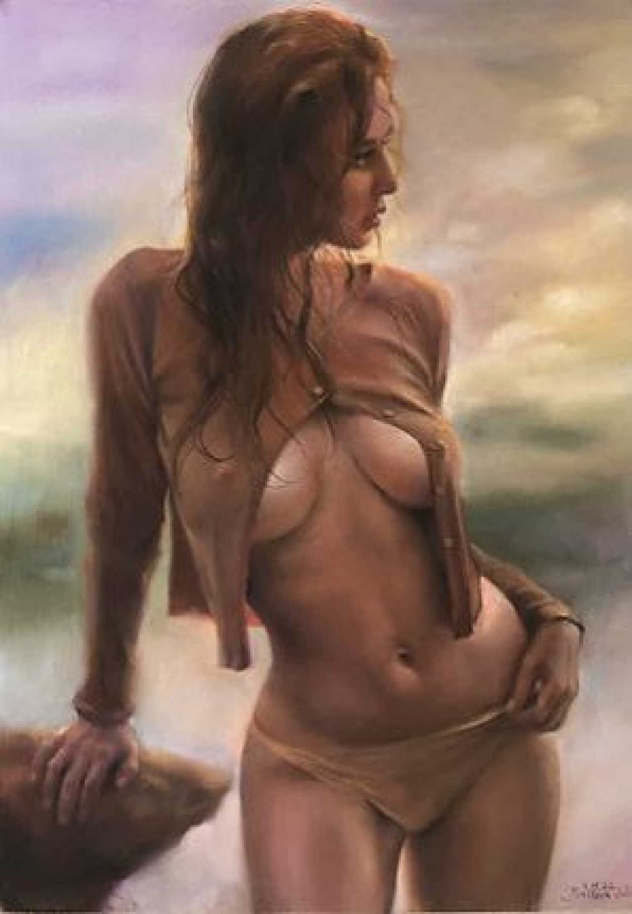 Cette peinture au pastel à l&39;huile montre une jeune fille vêtue de vêtements provocateurs et ornée d&39;une expression coquette. Elle se tient dans une pose séduisante, avec son poids déplacé sur une hanche et sa tête en arrière, regardant au loin. Ses cheveux sont coiffés de manière séduisante, avec des vagues lâches tombant en cascade sur ses épaules et encadrant son visage. Ses sourcils sont arqués, ce qui ajoute à son expression coquette globale. Ses vêtements sont provocants, avec un haut ajusté et une jupe qui épouse ses courbes. L’artiste a habilement utilisé la couleur et la texture pour créer une impression de profondeur et de vie dans la peinture. Des couleurs chaudes et audacieuses dominent la scène, donnant l’impression d’une atmosphère vivante et excitante. L&39;artiste a également utilisé une gamme de techniques de pastel pour créer de la texture et du mouvement, comme le mélange et la superposition des couleurs pour créer une sensation de douceur et de profondeur. Dans l’ensemble, cette peinture capture l’essence du flirt et de la séduction, avec les vêtements provocateurs des filles, leur expression séduisante et leur pose provocante. L&39;utilisation de pastels crée une sensation de douceur et de texture, ajoutant à la sensualité globale de la scène. Format A3, les dimensions sont de 42 x 29,7 cm. Pastel sur papier d&39;art.