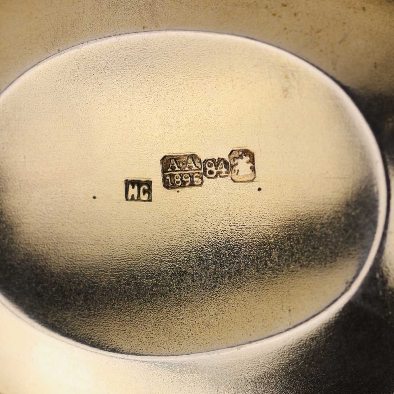 Louche russe en argent avec motif émaillé, réalisée selon la technique de l&39;émail cloisonné. Dorure résiduelle. Poinçons : poinçon-nom NS correspondant au propriétaire de l&39;établissement d&39;argenterie Strulev Nikolai Fedorovich, connu dans la période 1883-1908 ; Les lettres « A.A » sont les initiales du maître d&39;essai, Anatoly Apollonovich Artsybashev (Moscou, 1891-1896). Le numéro "1896" est l&39;année du poinçonnage. Le numéro "84" certifie l&39;échantillon d&39;argent 84. « Saint Georges le Victorieux » est la marque de fabrique du Bureau d&39;essai de Moscou. Poids : 102 g.
