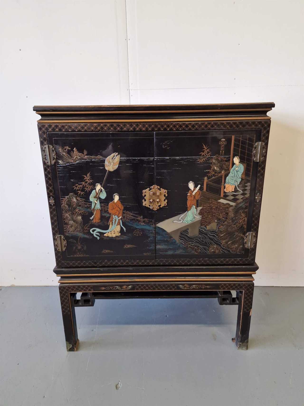 Oriental style cabinet Bois laqué Asian Art Mid-20th century