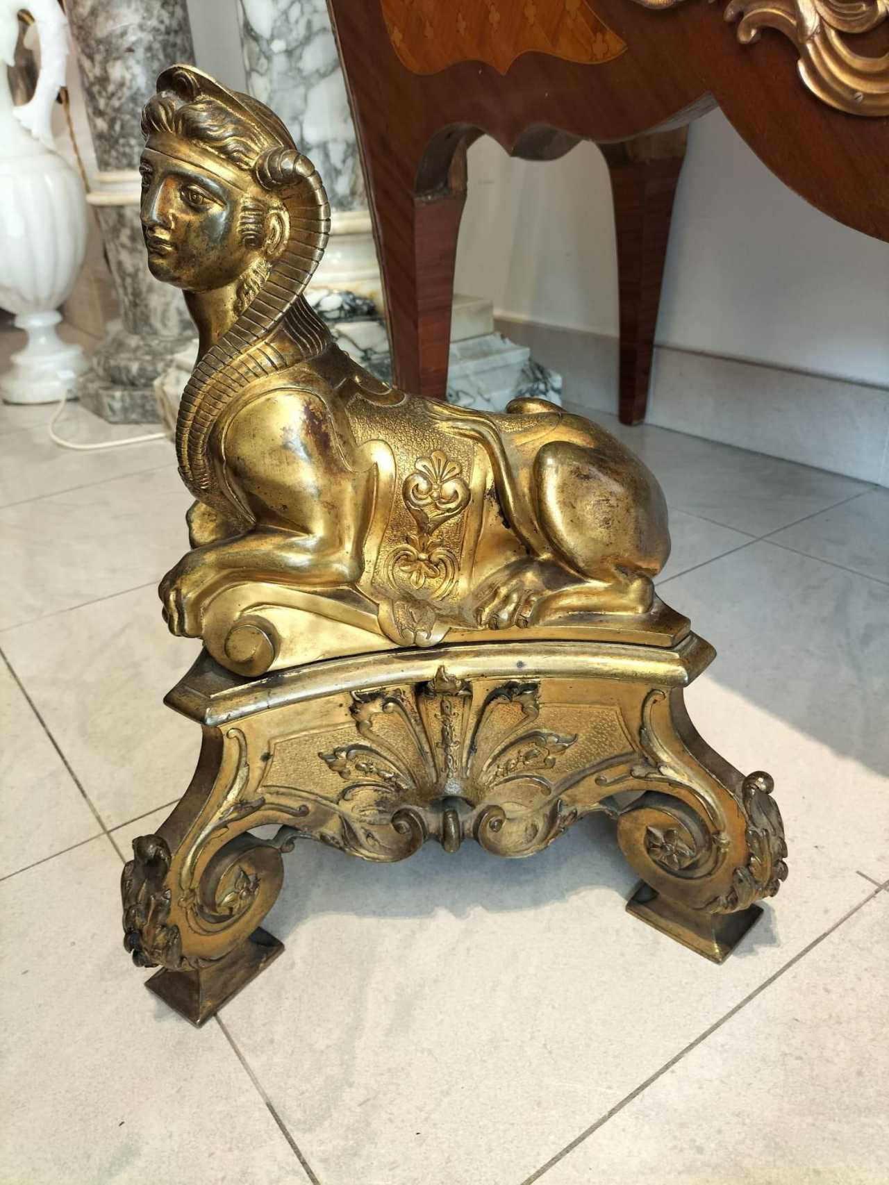 Pair of 19th Century Gilt Bronze Fire Dogs in the Ancient Egyptian Style Bronce 19th century