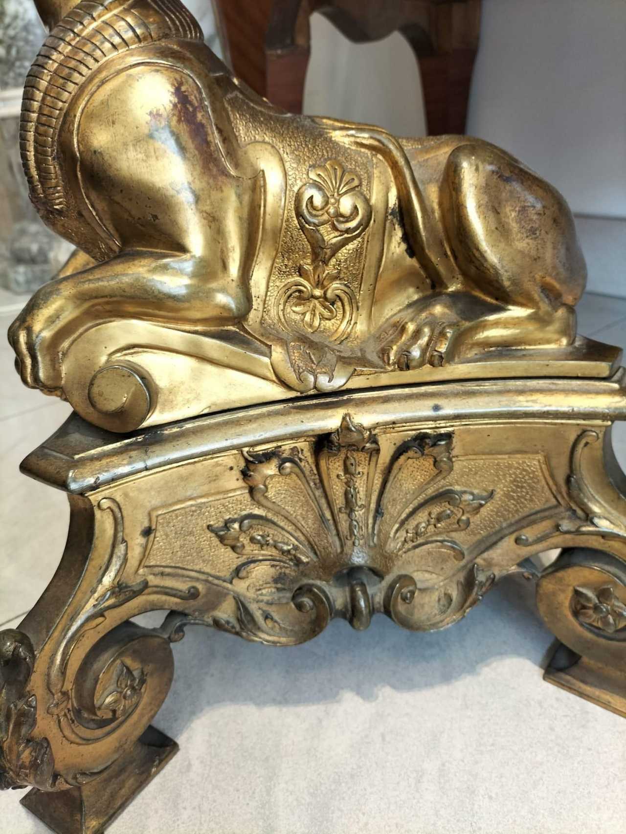 Pair of 19th Century Gilt Bronze Fire Dogs in the Ancient Egyptian Style Bronce 19th century