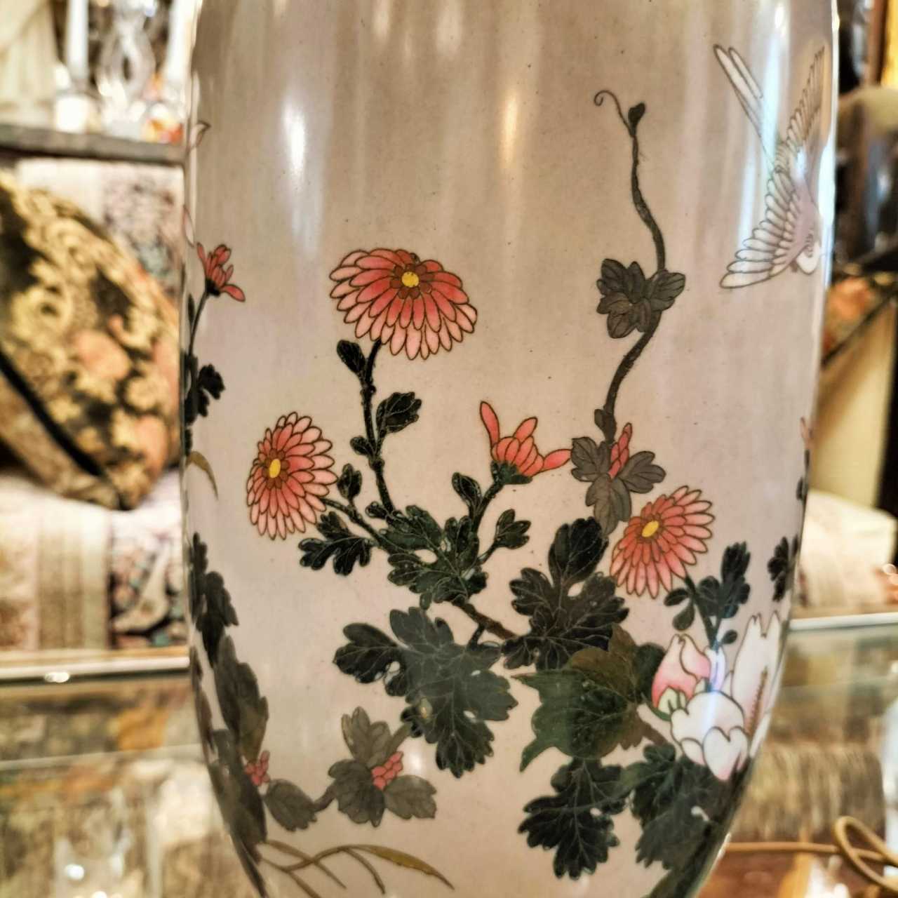 Pair of Japanese Large cloisonné enamel Lamps 19th Century Bronce 19th century