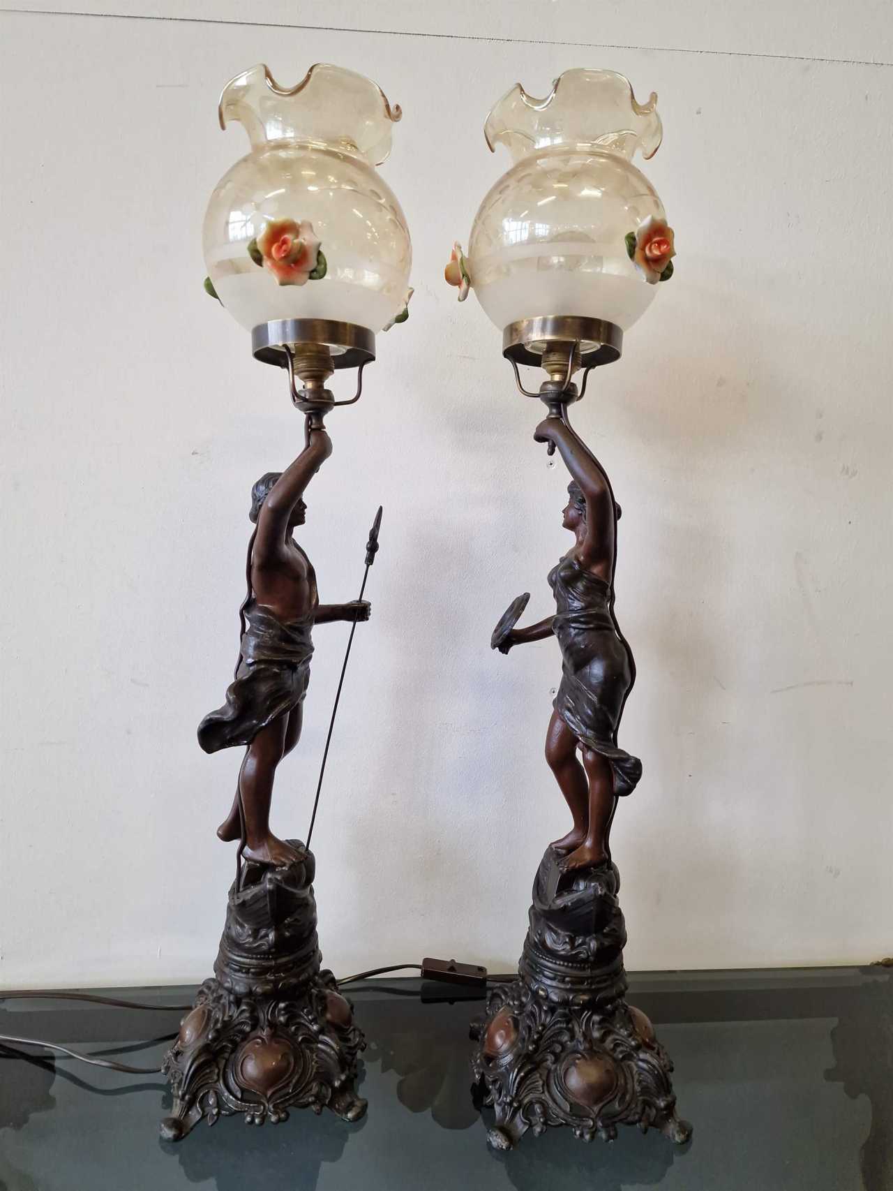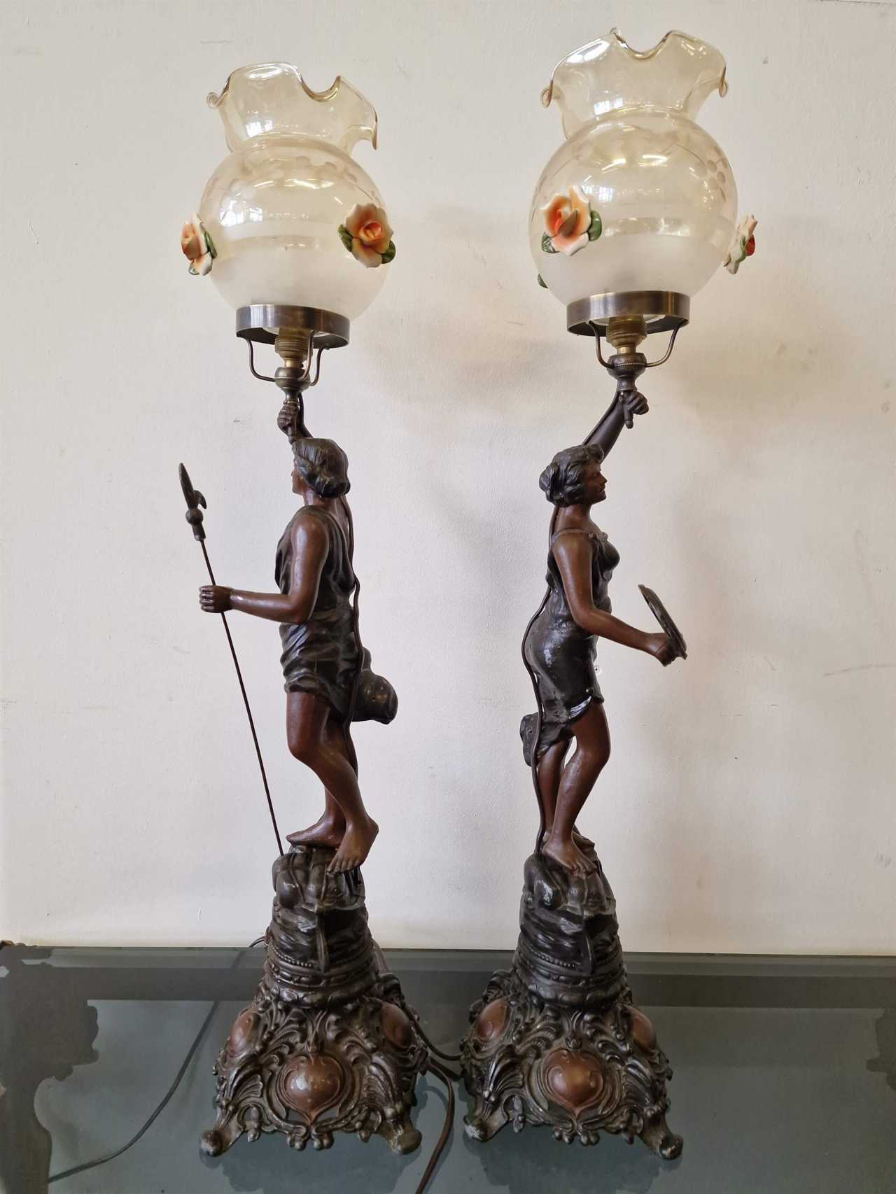 Paire de lampes de table Métal Art Nouveau Early 20th century