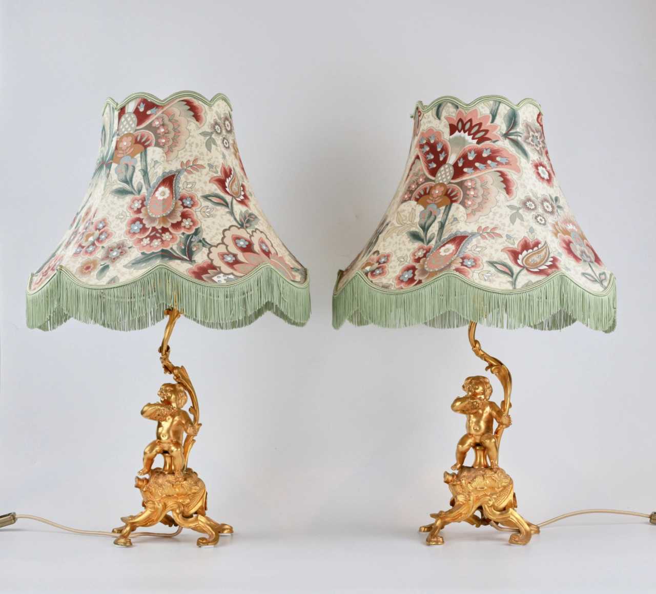 Paire de lampes de table Putti Bronze doré Neorococo Early 20th century