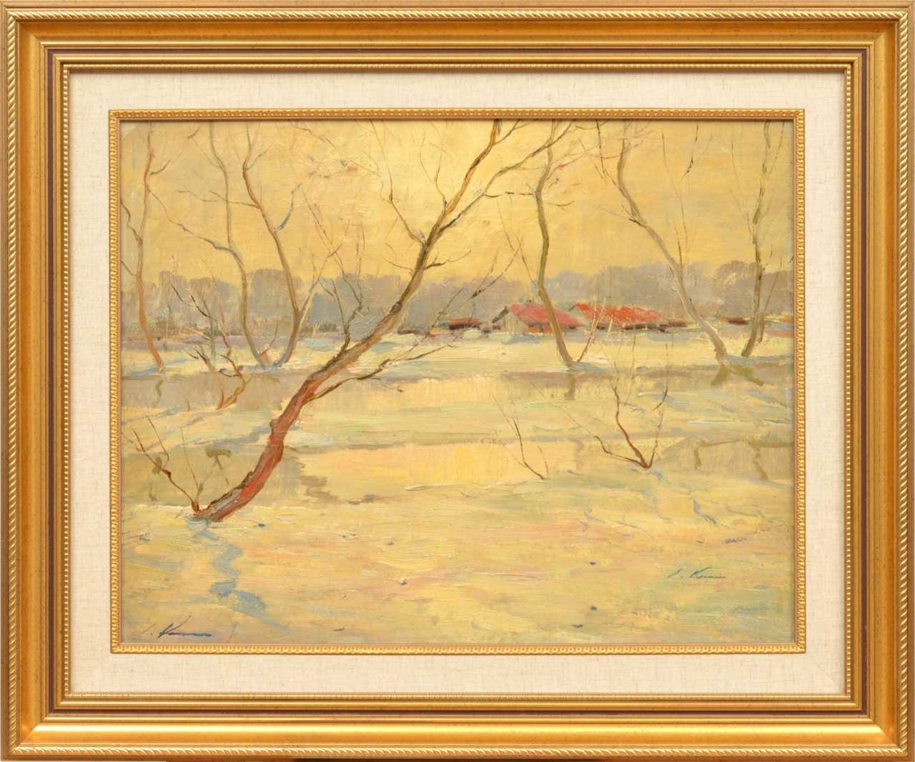 Peinture à l&39;huile Journée d&39;hiver de Stanislavs Kreics Mid-20th century