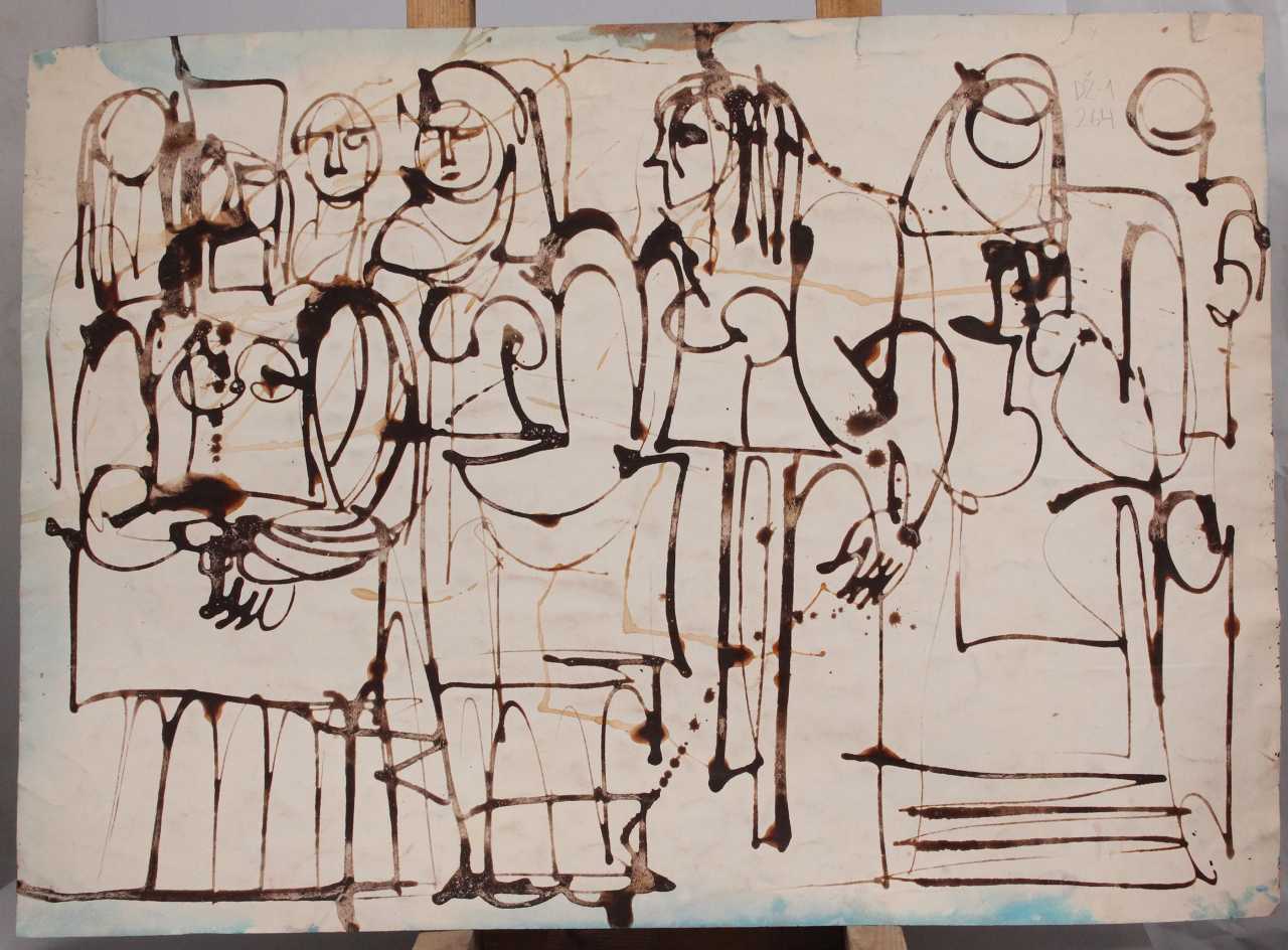 Peinture recto verso Choeur de deux personnages watercolor Mid-20th century