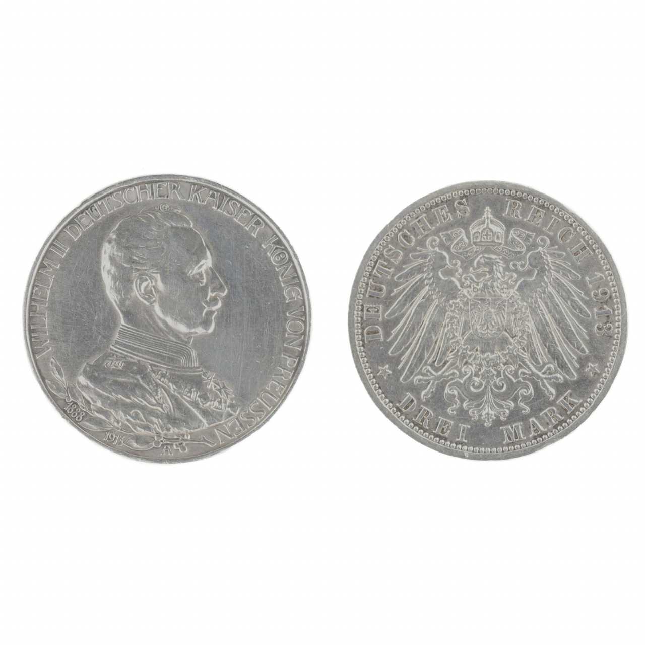 Pièce en argent 3 marks. Allemagne 1913. Diamètre : 33 mm. Poids : 16,58 g.