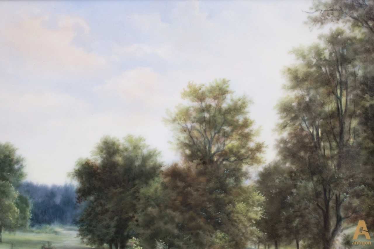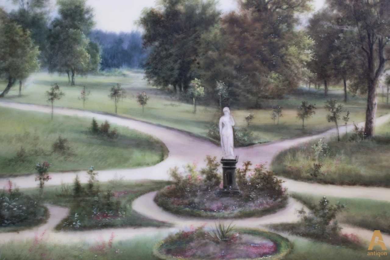 Peinture sur porcelaine. Vue sur le parc. Taille interne - 22,5 cm x 27,5 cm.