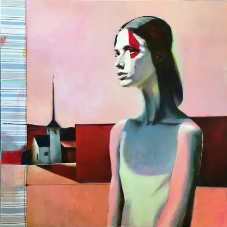 Auteur : Agnese Kurzemniece, Fille de Sarkandaugava, acrylique sur toile de lin, dimensions : 80 x 80 cm, année 2023