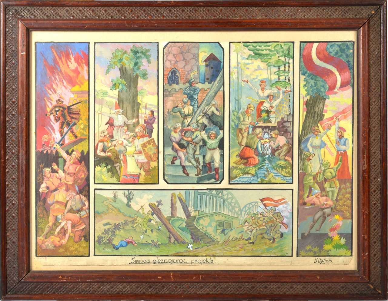Deuxième moitié du 20e siècle. Papier, aquarelle. 36,5x49,5 cm. Histoire de la Lettonie Valters Uzticis.