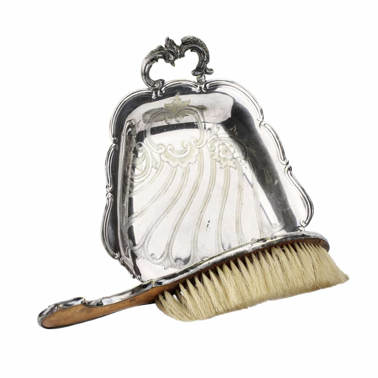 Set en metal argente pour nettoyer les miettes de la table Métal Baroque At the turn of 19th -20th century