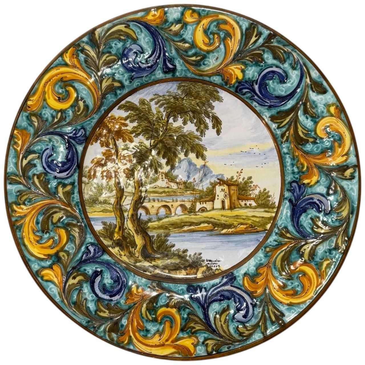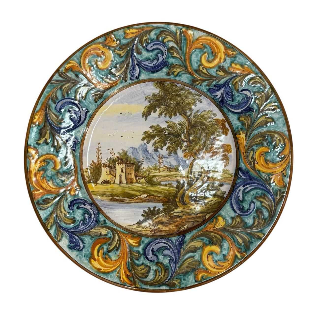 Set of Two Hand-Painted Italian Majolica Plates by N. Tapolini, Castelli, 1977–1978. A beautiful pair of hand-painted decorative majolica plates signed by N. Tapolini, crafted in Castelli. Each plate features intricate, Renaissance-inspired figural scenes, painted in vivid, earthy tones typical of the Castelli maiolica style.These plates represent the fine artistry of Castelli ceramics, combining historical motifs with masterful technique.Ideal for collectors or as striking wall décor.Technique: Tin-glazed earthenware, hand-painted.