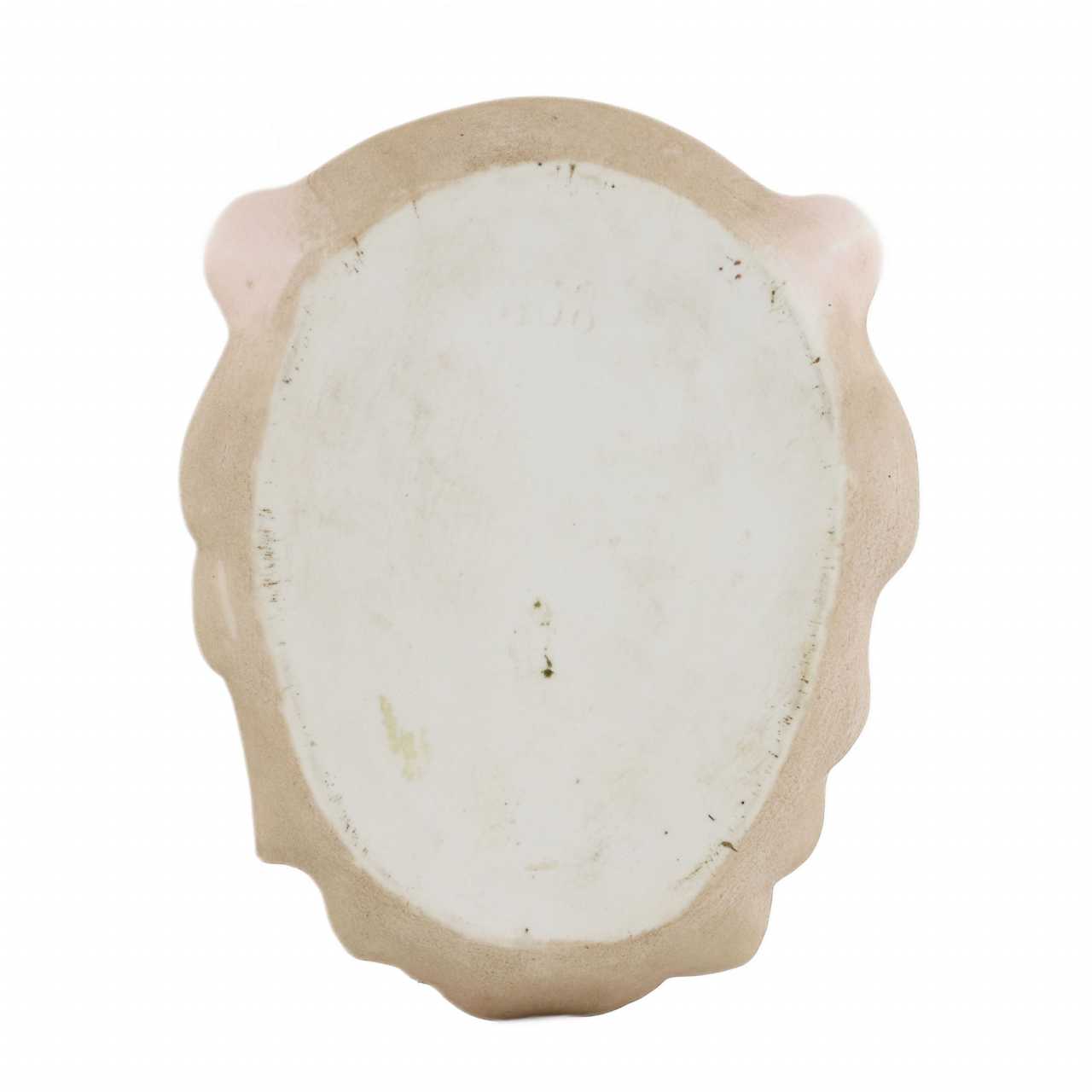 Singe cendrier. Usine Kouznetsov. 19ème siècle. Il sagit dun masque comique représentant un singe à la bouche ouverte. Biscuit peint. Numéro à lessai au dos du socle : 838. Dimensions : 6x14x11cm.