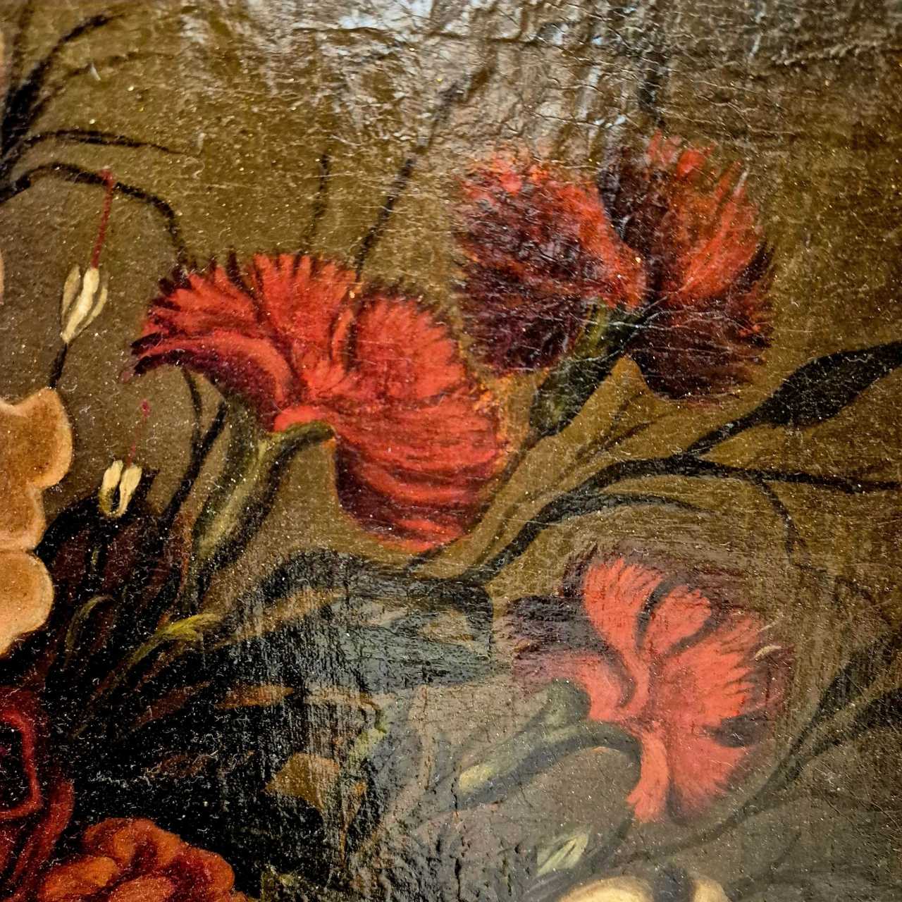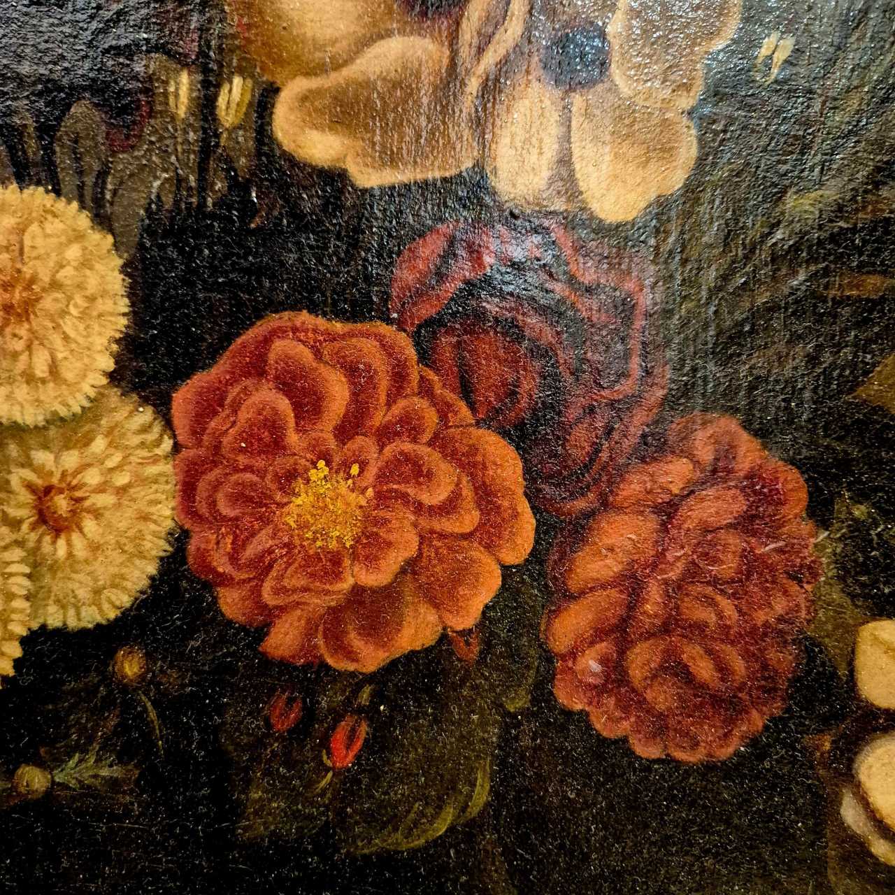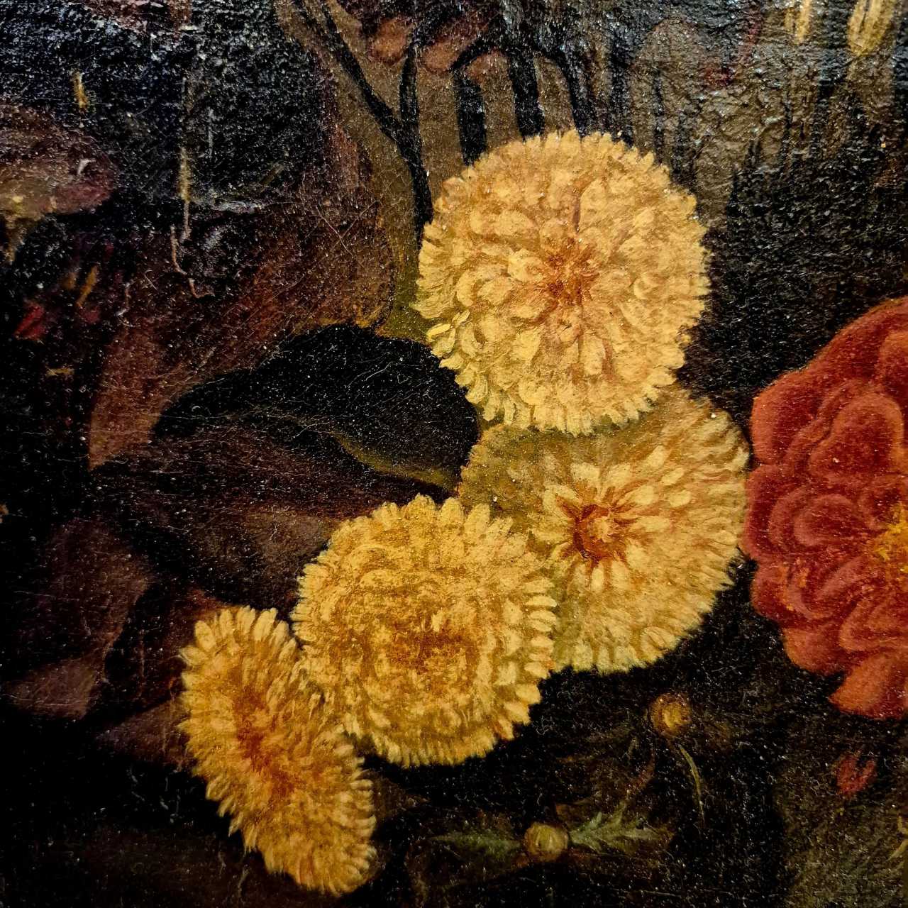 Still life painting with flowers, signed by the artist Aurelia Riolso De Mortimer, dated 1887. Beautiful glossy patina and characteristic craquelure. Original tondo oval frame. The painting has been re-coated by our professional restorer.