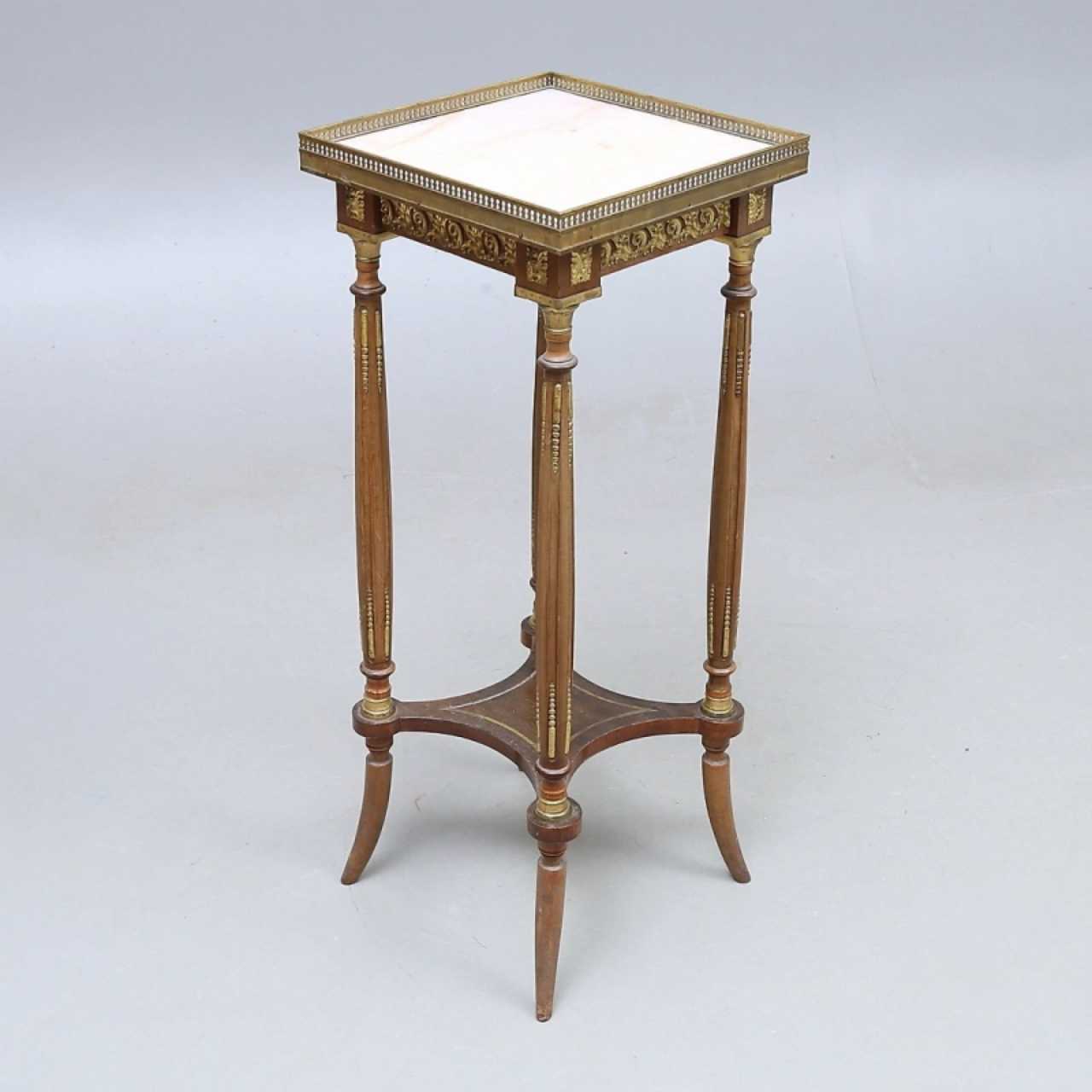 Table de style Louis XVI, ornée d&39;éléments décoratifs en métal doré. France début 20ème siècle.