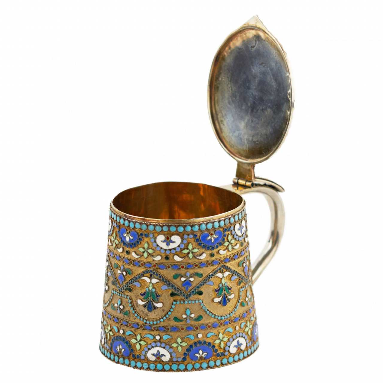 Tasse russe en émail cloisonné en argent de style néo-russe. 20ième siècle. Silver 84 Cloisonné enamel Gilding Neo-Russian 20th century