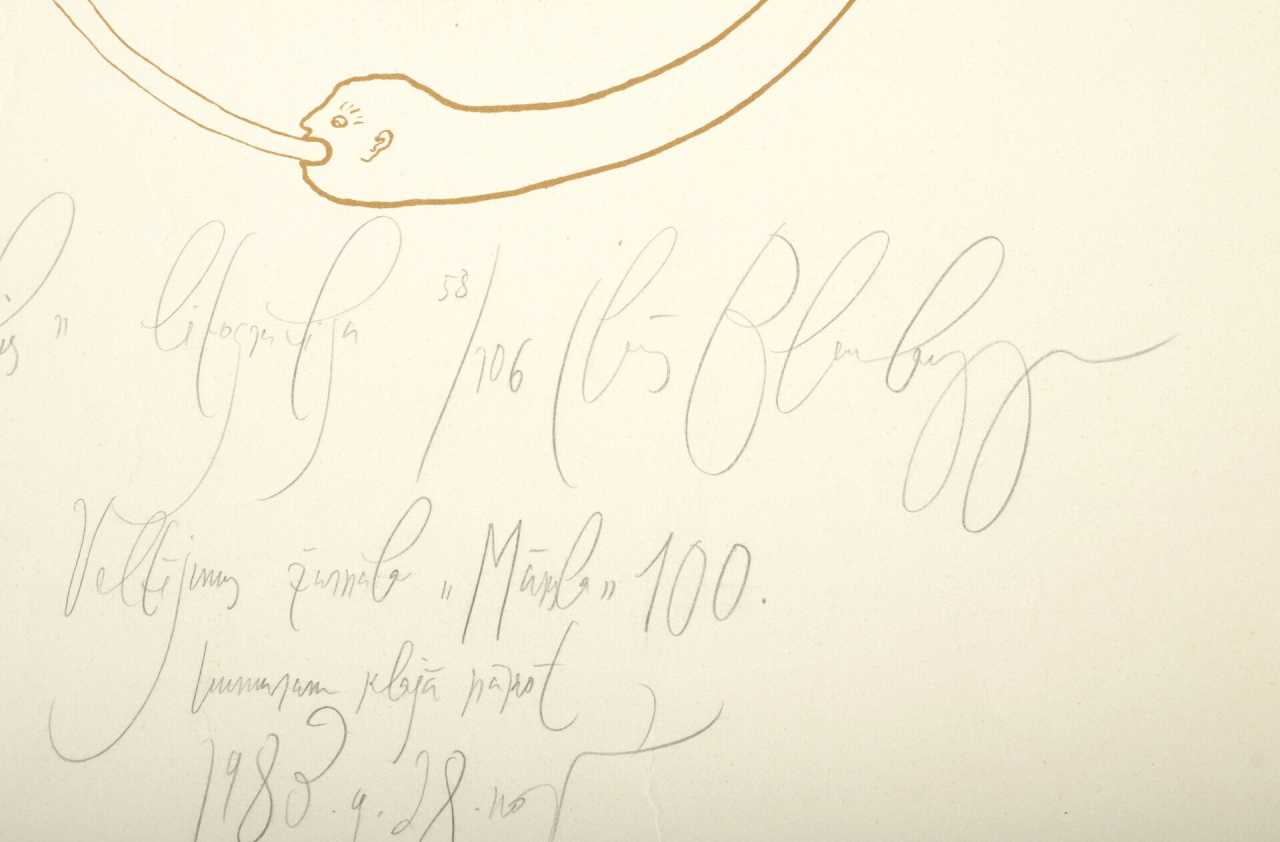 1983. Papier, lithographie. 58106 hommage au 100e numéro du magazine d&39;art. 54x40cm. Ilmars Blumbergs.