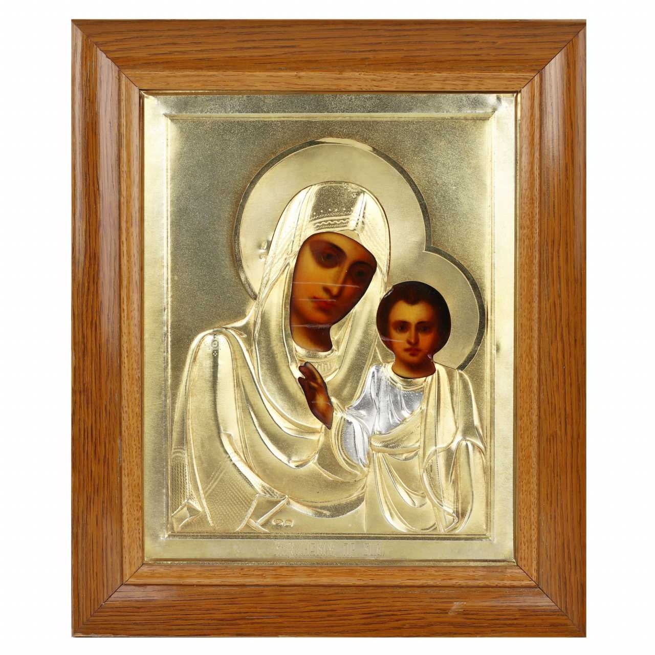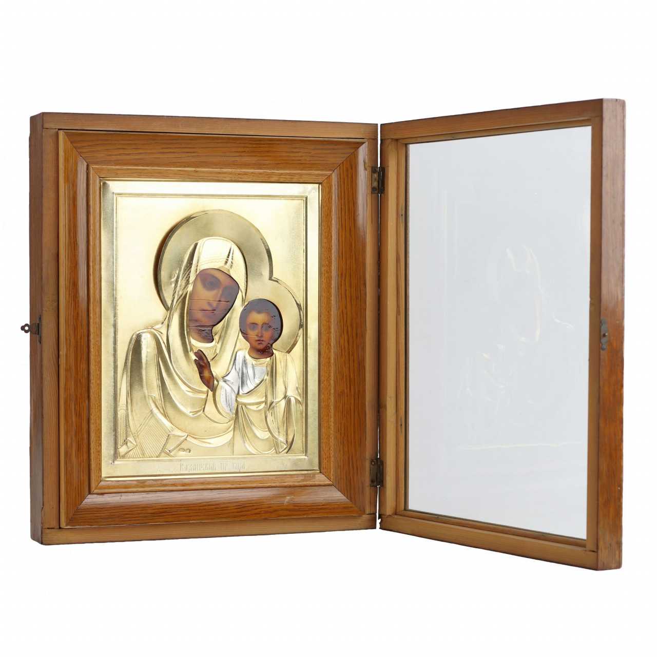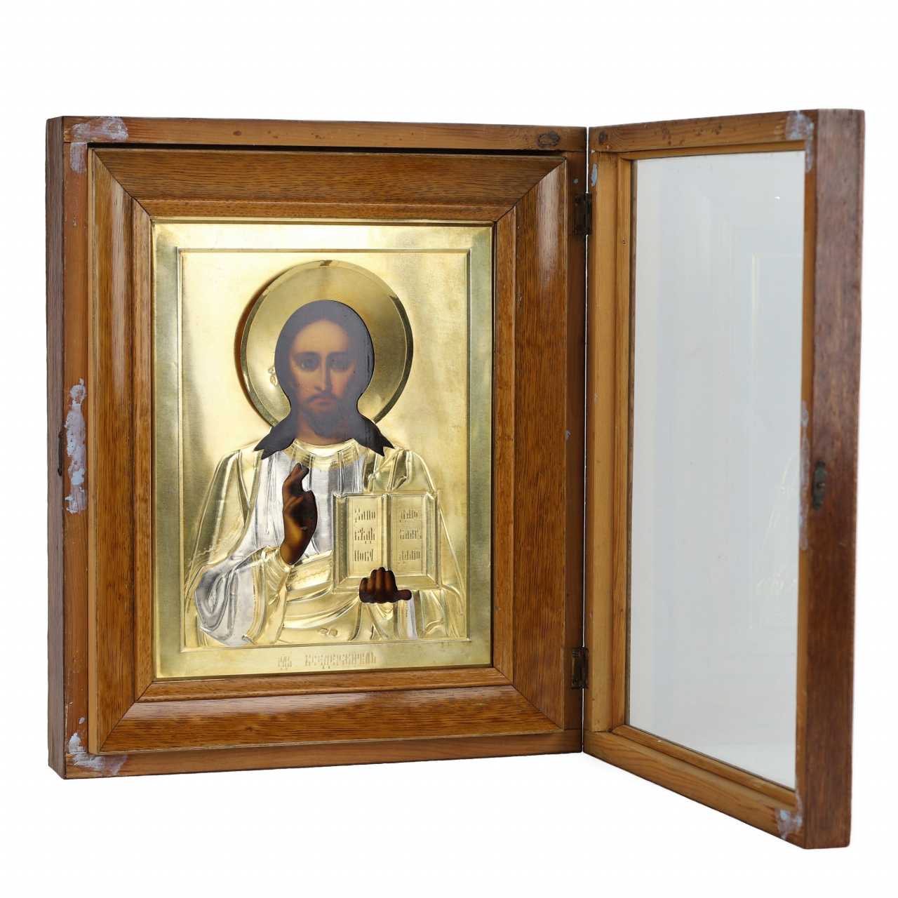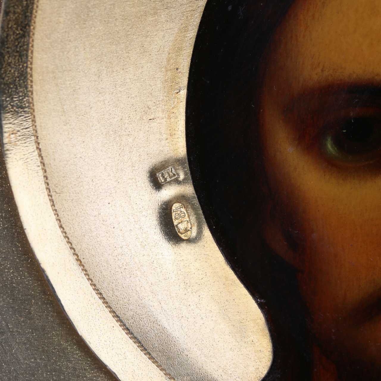Le couple nuptial d`icônes, créé au tournant des XIXe et XXe siècles à Moscou, est un exemple exceptionnel de l`art de la peinture d`icônes russe. La composition présente deux images traditionnelles : une image à mi-corps du Seigneur Tout-Puissant avec un livre ouvert dans sa main gauche et un geste de bénédiction avec sa main droite, ainsi que Notre-Dame de Kazan avec un bébé dans ses bras. Les images sont exécutées dans le style académique typique des ateliers de peinture d`icônes de Moscou de la fin du XIXe siècle. Les icônes sont enfermées dans de luxueux cadres en argent doré, créés dans l`usine moscovite d`Emelyan Alekseevich Kuznetsov dans le style Art Nouveau. Les éléments décoratifs les plus raffinés confèrent aux œuvres une sophistication particulière. Les icônes sont placées dans des étuis à icônes en bois originaux correspondant à l`époque de leur création. Matériaux et techniques : Panneau, gesso, tempera à l`œuf, argent 84, dorure, moulage, ciselure, sciage, gravure à la main avec un burin, ciselure, meulage, polissage, finition, montage Poinçons : Nom du maître EK - Kuznetsov Yemelyan Alekseevich , propriétaire d`une usine d`argenterie. Poinçon d`argent 84 avec une image d`une tête de femme dans un kokoshnik, tournée vers la droite, avec la lettre Omega - Bureau d`essai de Moscou, période 1908-1917. Dimensions : Icônes : Hauteur – 22 cm, largeur – 17,5 cm. Étuis Ikon : Hauteur – 30 cm, largeur – 26 cm Contexte historique : Kuznetsov Emelyan Alekseevich est le propriétaire d`une usine d`argenterie fondée en 1886. Selon les données de 1897, l`entreprise produisait des cadres en argent pour icônes d`une valeur d`environ 5 000 roubles. La production comprenait 13 ouvriers masculins, 6 adolescents et 6 garçons apprenant le métier. Les étuis à icônes de son atelier se distinguaient par la haute qualité de leur ciselure et la sophistication de leur décor doré. Couple d`icônes de mariage : un symbole de bénédiction et d`unité spirituelle Le couple nuptial est une composition spéciale composée de deux icônes : le Sauveur et la Sainte Mère de Dieu, exécutées dans le même style et la même manière de peindre. Ces icônes sont utilisées lors du sacrement du mariage et font partie intégrante de la tradition du mariage orthodoxe. Au cours de la cérémonie, le prêtre bénit le marié avec une image du Christ et la mariée avec une icône de la Mère de Dieu, symbolisant ainsi leur protection spirituelle. Les icônes de mariage sont offertes aux jeunes mariés par leurs parents : une icône du Sauveur est donnée à un fils et une image de la Mère de Dieu à une fille. Ce geste est non seulement une bénédiction, mais aussi une garantie de préservation des valeurs et des traditions familiales. Après la cérémonie de mariage, les icônes sont placées dans le coin rouge de la maison, devenant la base de l`iconostase de la maison et détenant une bénédiction pour une vie conjugale longue et heureuse. Selon une ancienne coutume, les icônes de mariage sont transmises de génération en génération, devenant des héritages familiaux inestimables.Отправить отзывБоковые панелиИсторияСохраненные