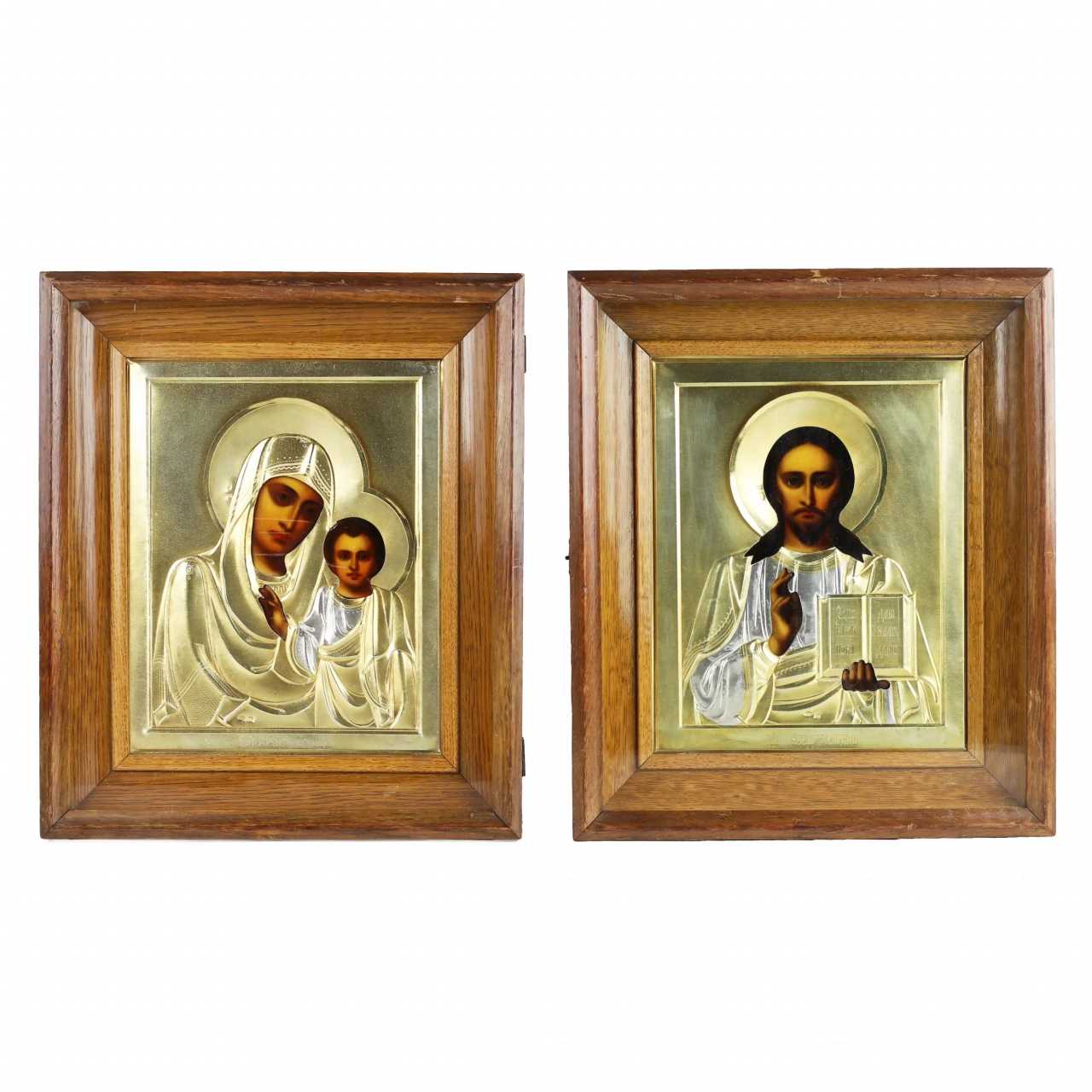 Une paire d`icônes de mariage dans des cadres argentés de style Art Nouveau. Moscou début du XXe siècle Silver 84 Gilding Early 20th century