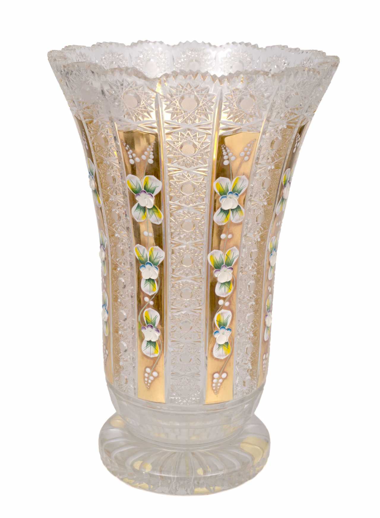 Vase en cristal avec peinture émaillée Crystal Mid-20th century