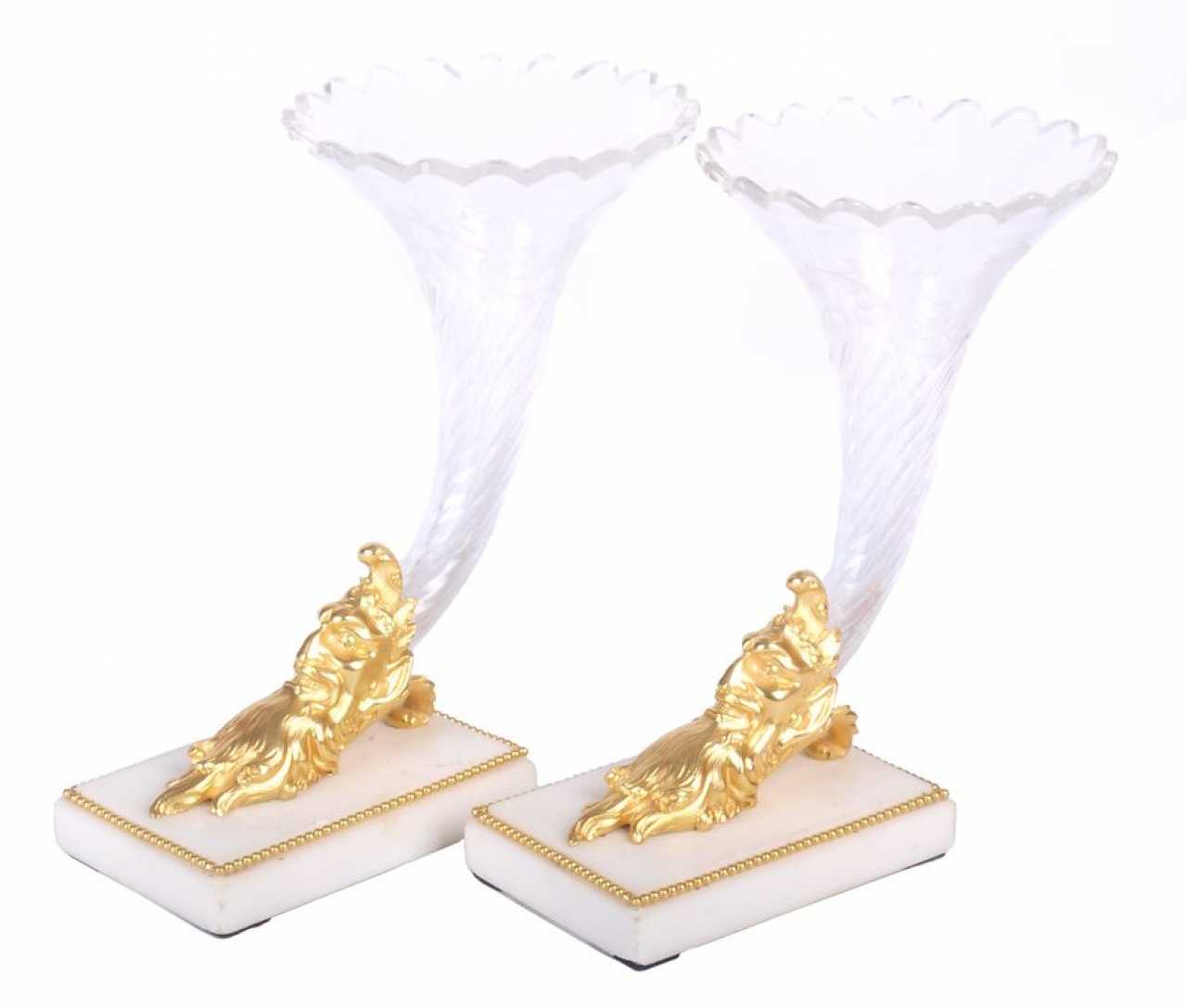 Vases en verre en forme de trompette sur une base en marbre et bronze doré (paire) Verre Early 20th century