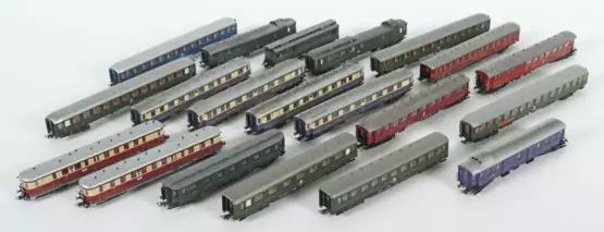 Lot 98 | 18 Personenwagen und Dieseltriebzug Liliput, Spur H0, 2-teilger Diesel…
