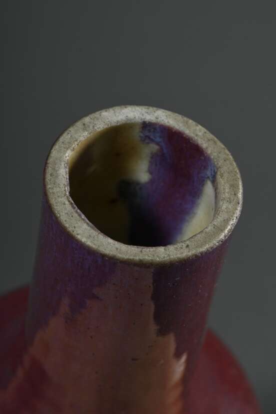 Lot 1318 | 2 Diverse chinesische Baluster- und Kalebassenvasen mit monochromer Sang de boeuf und Flambé Flussglasur, H. 13,2/19,6cm, z.T. abgeschliffen