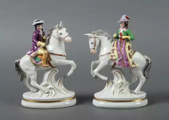 Lot 1047 | 2 Reiterfiguren Volkstedt Müller & Co, 2. Hälfte 20. Jh., Dame und Her…